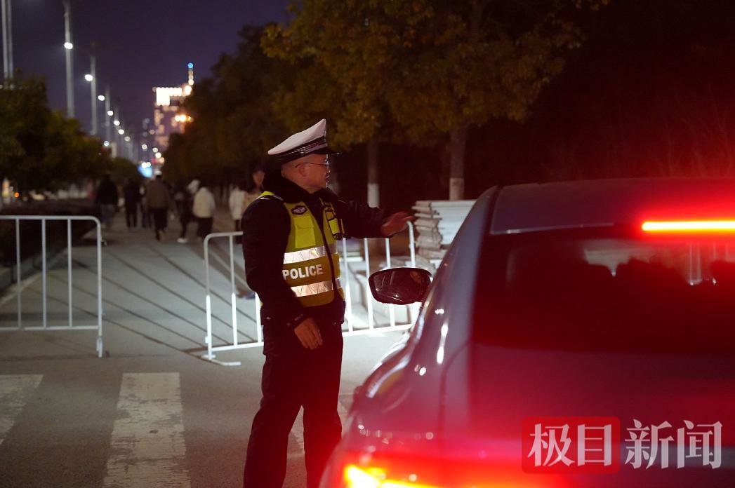 科学布警,织密动态“管控网”。当天下午2点30分,活动核心区周边道路上,身着冬执勤服、佩戴肩灯的反光身影已在岗。他们或驾驶警摩巡逻清障,或在重点路口疏导车流,或引导接驳公交有序停靠。执勤警力在关键节点设置交通管制牌和铁马,根据现场人流车流饱和情况,动态采取分段放行、临时封闭、循环绕行等管控措施,既保障了核心区安全,又最大限度减少了对社会交通的影响。在接驳转运点,数十台接驳公交车在民警指挥下整齐排列、有序周转,形成一条条便捷的“摆渡线”。从外围停车区到活动现场,市民乘坐接驳车快速抵达,避免了长距离步行和核心区拥堵。据统计,当晚各接驳点累计发送接驳班次百余趟,高效转运观演群众近万人次。