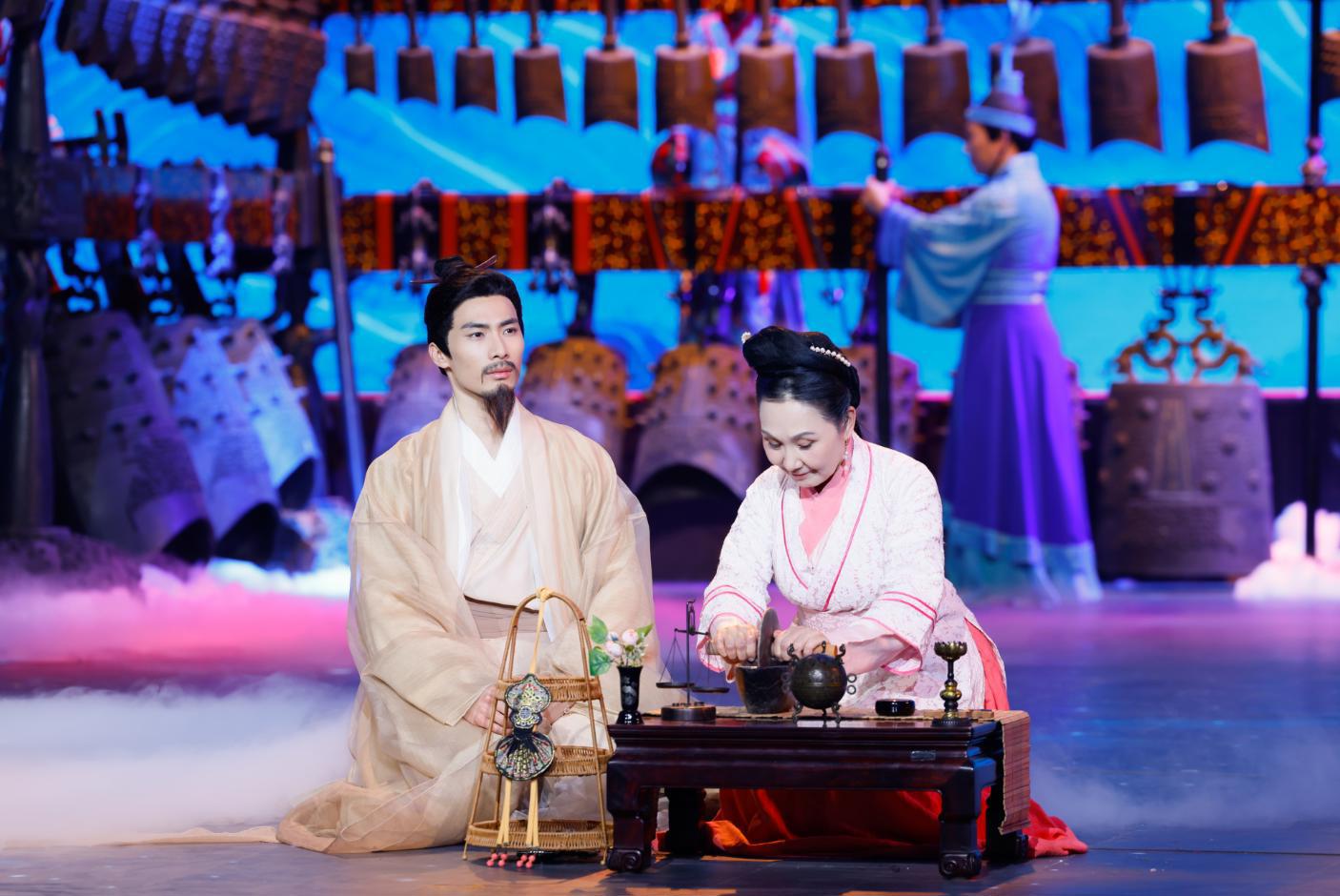 曾侯乙编钟的复制品奏响了穿越两千四百年的华夏正音。编钟演奏非遗传承人与乐团合作,演绎了经典曲目。其雄浑磅礴、一钟双音的独特音律,不仅展示了中国古代高超的音乐铸造技艺,更让观众直观感受到礼乐文明中“和”的精神内涵。编钟与舞台现代声光电技术的结合,营造出古今对话的震撼场景,成为晚会中极具辨识度的湖北符号。
