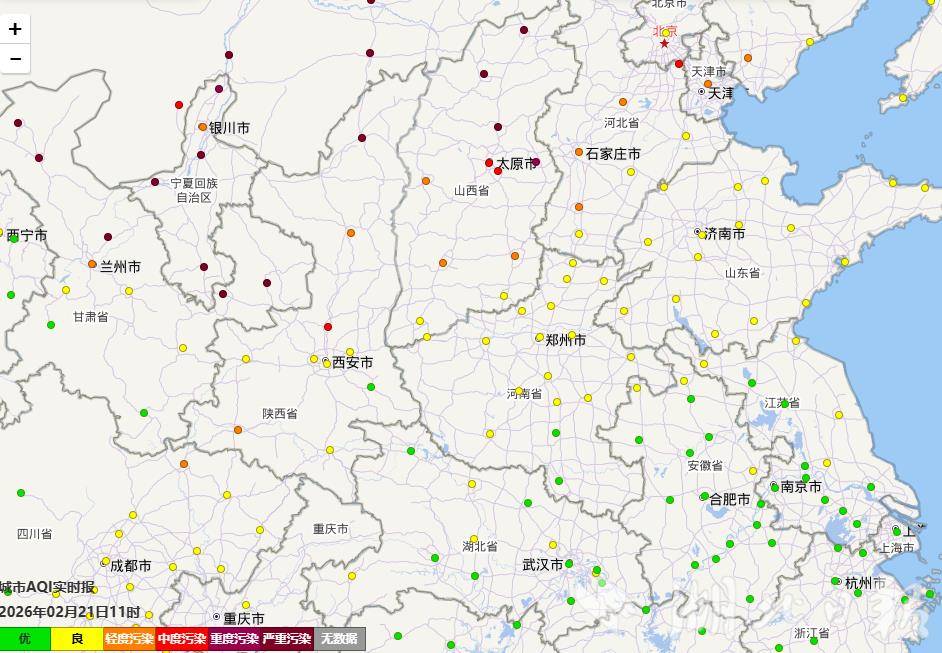 监测数据显示,2月21日11时,内蒙古、山西、甘肃、宁夏和陕西北部多地出现沙尘污染,部分城市已达严重污染,首要污染物PM10。目前我省空气质量以优良为主,首要污染物为PM2.5。
