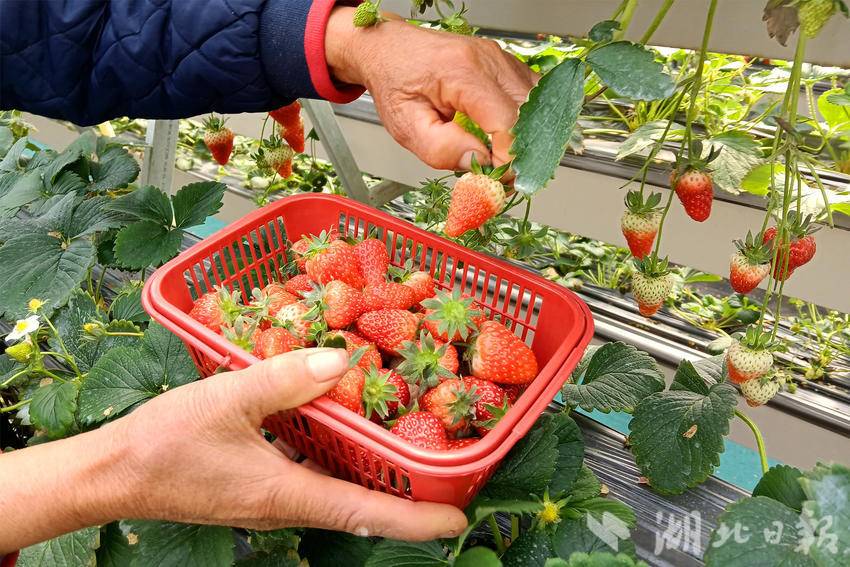 湖北日报客户端讯(通讯员张国荣)2026年2月20日,宜昌市夷陵区小溪塔街道鲟泷湾农旅融合基地的现代果蔬立体种植大棚里,一排排草莓架排列整齐,绿叶中点缀着一颗颗鲜艳的草莓,吸引不少市民体验采摘。