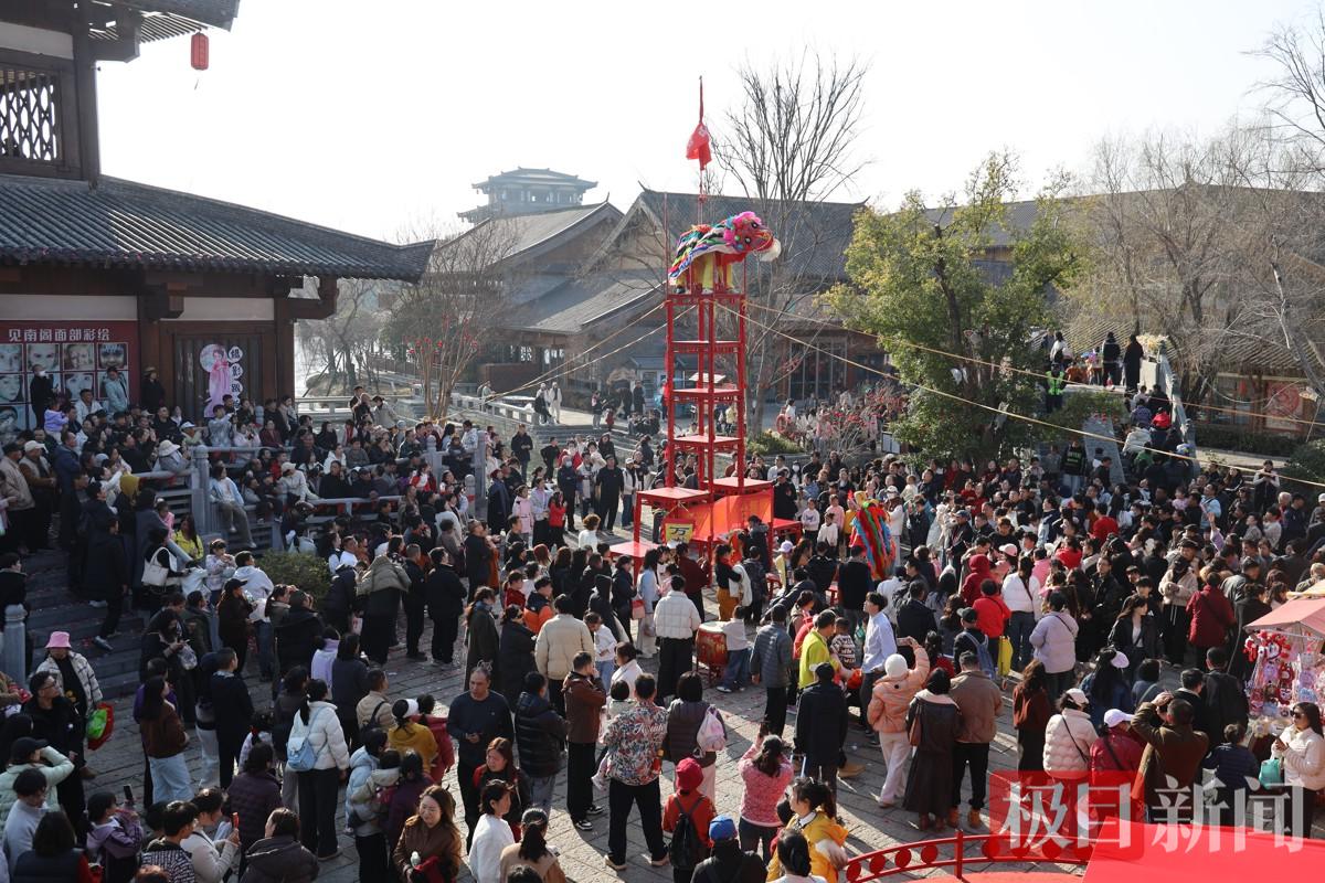 “好!”随着一阵惊呼,高达八层的高台舞狮点燃全场。狮头辗转腾挪,在数米高空惊险亮相,每做一个动作,台下便爆发出雷鸣般的掌声。