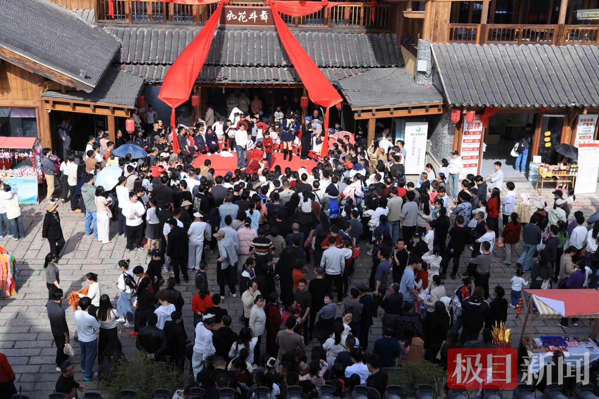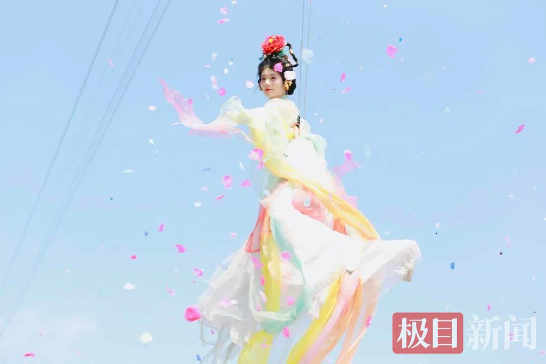 高空“仙女散花”如梦似幻,“飞天凤凰”衣袂翩跹,小镇中式浪漫吸引游客驻足停留。