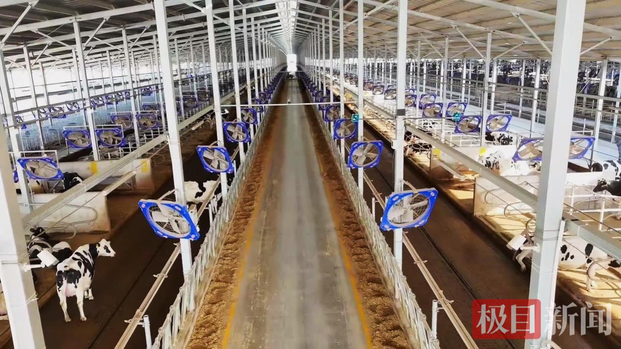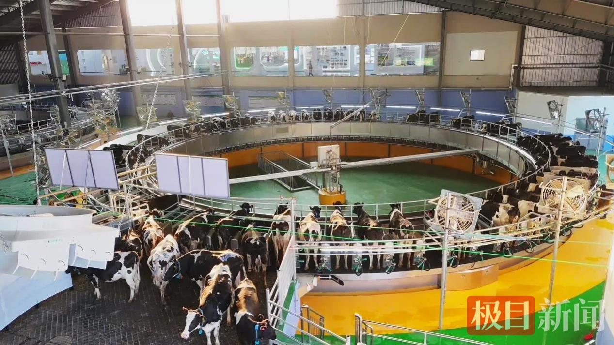 走进云上牧歌(襄阳)万头奶牛智慧产业园,只见先进的巨型转盘挤奶机缓缓运转,奶牛们训练有素地依次登上转盘。来自东北的奶厅主管胡宝玉,正注视着每一个挤奶环节。“刚开始跟牛打交道,也没想到会干出感情。”胡宝玉笑了笑,东北口音在空旷的大厅里显得格外爽朗。2024年,他离开东北老家,跨越两千多公里来到九集镇。起初只是想换个环境,但很快,他就被这座现代化牧场的“智慧”震撼了。