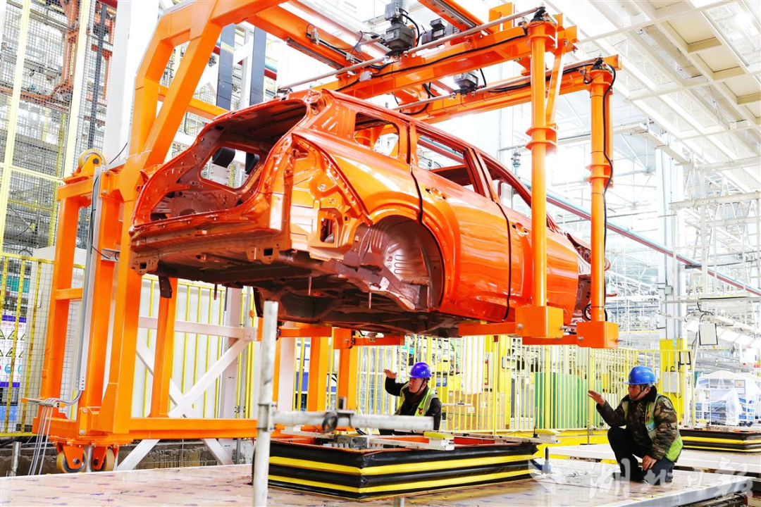 东风新能源智能越野车产业基地内,工人们全力攻坚,奋力冲刺春节改造窗口期,全力推进产线升级。(视界网 王虎 摄)
