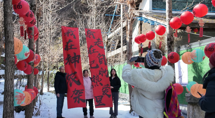 “这里没有喧嚣,只有山水与年味相伴,太适合慢下来感受春节了。”来自陕西的游客刘女士一边拍摄一边感叹,“步道旁的民俗展板让孩子了解了很多传统年俗,这种沉浸式体验特别有意义”。景区内,亲子家庭、摄影爱好者络绎不绝,大家漫步林间,在草木清香中品味新春的宁静与美好。
