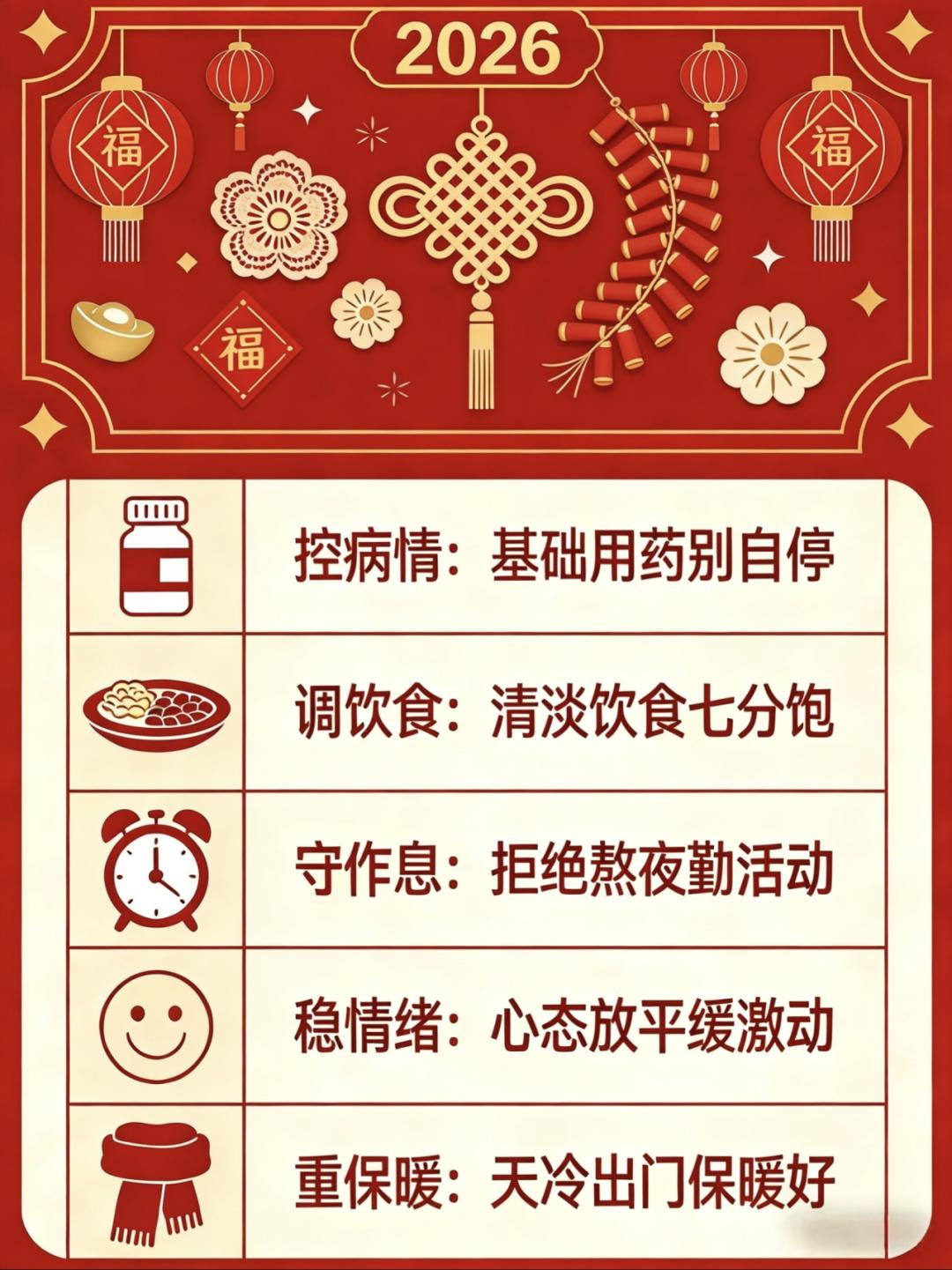 湖北脑医提醒,做好以下五件事,就能有效降低春节期间心脑血管风险,安心过个健康年: