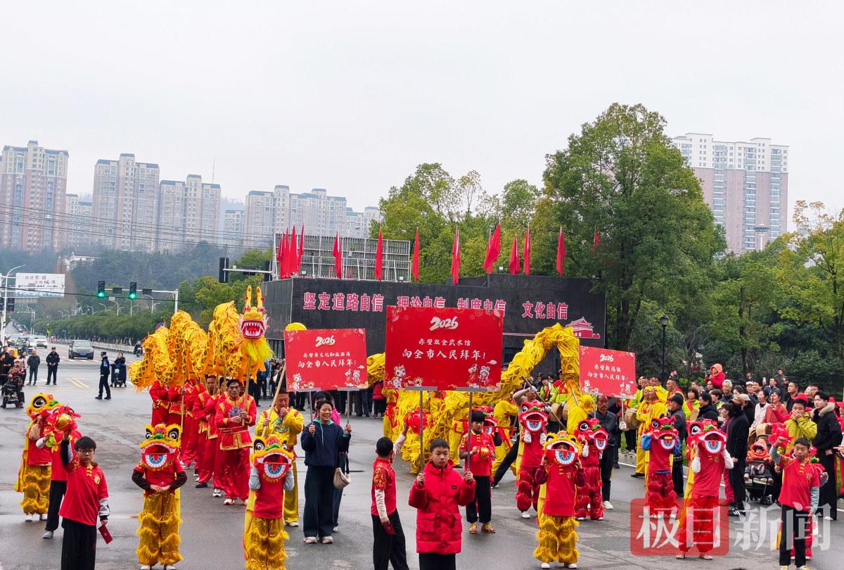 锣鼓声声辞旧岁,龙狮欢腾贺新春。2月24日,2026年新春民俗文化活动在赤壁人民广场热闹上演,市民和游客在精彩的传统民俗表演中感受浓浓的年味,共庆新春佳节。