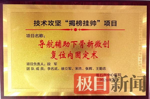 2月25日,“导航辅助下股骨骨折微创复位髓内钉固定术”凭借显著的临床优势,被列为黄石市中心医院2026年手术技术攻坚“揭榜挂帅”项目,标志着创伤外科在精准微创外科领域迈出了具有示范意义的坚实一步,为鄂东地区高龄、高危、复杂骨折患者带来更好的诊疗选择。