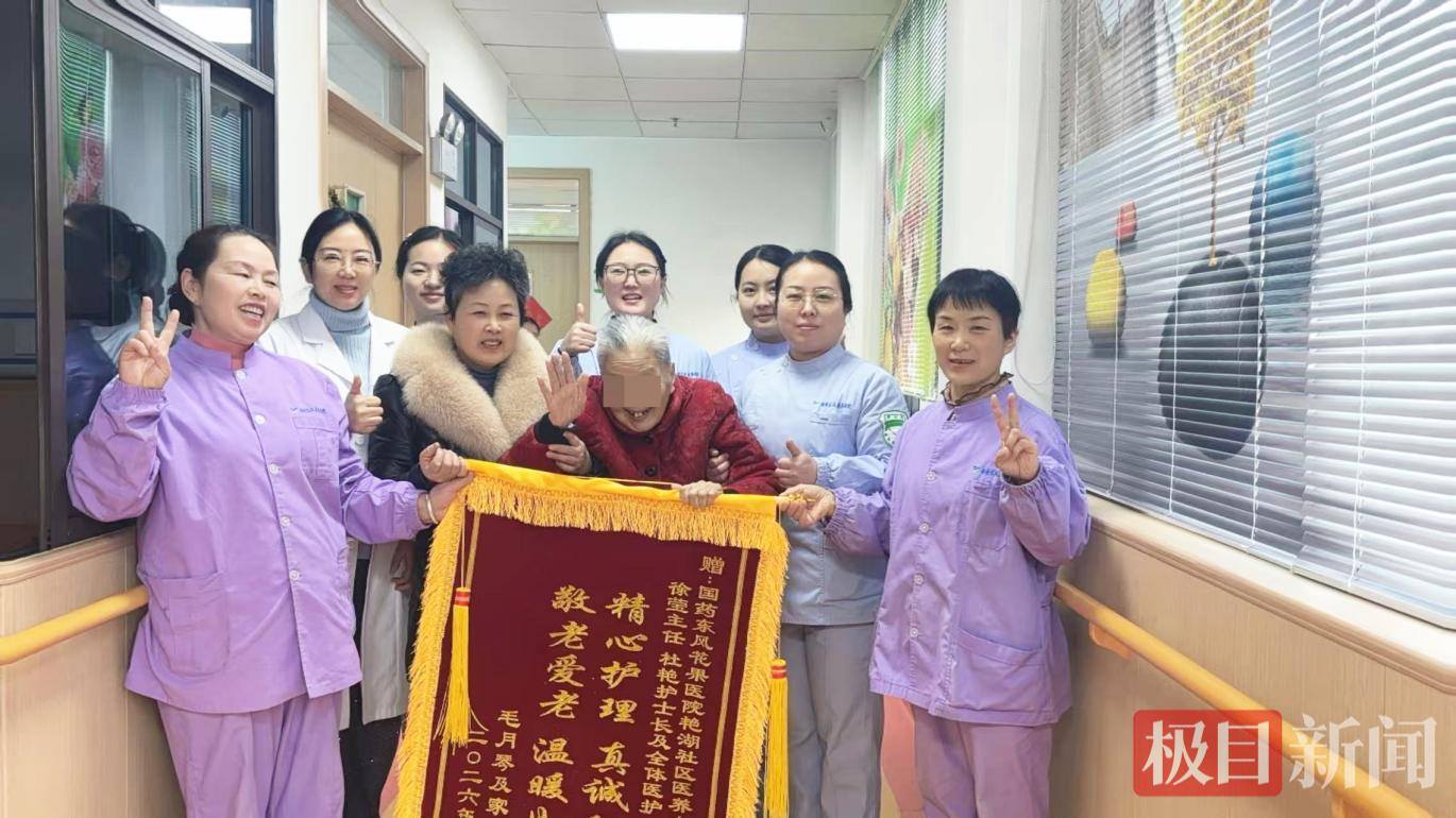 送锦旗现场,家属们握着工作人员的手连连道谢。大家一致表示,自老人入住以来,中心从日常起居、膳食营养、健康监测到康复护理、文娱活动、心理关怀,每一项服务都细致入微;徐主任带头尽责,团队随叫随到,把老人当亲人照料,让长者住得安心、家属格外放心。一面面印着赞誉的锦旗,既是对日常照护的肯定,更是沉甸甸的信任与托付。