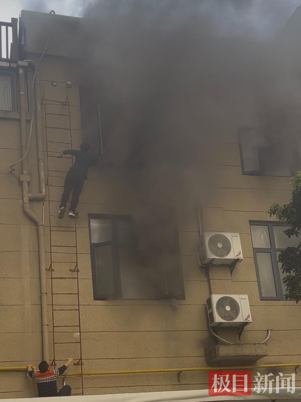 肖佳爬上消防梯救人