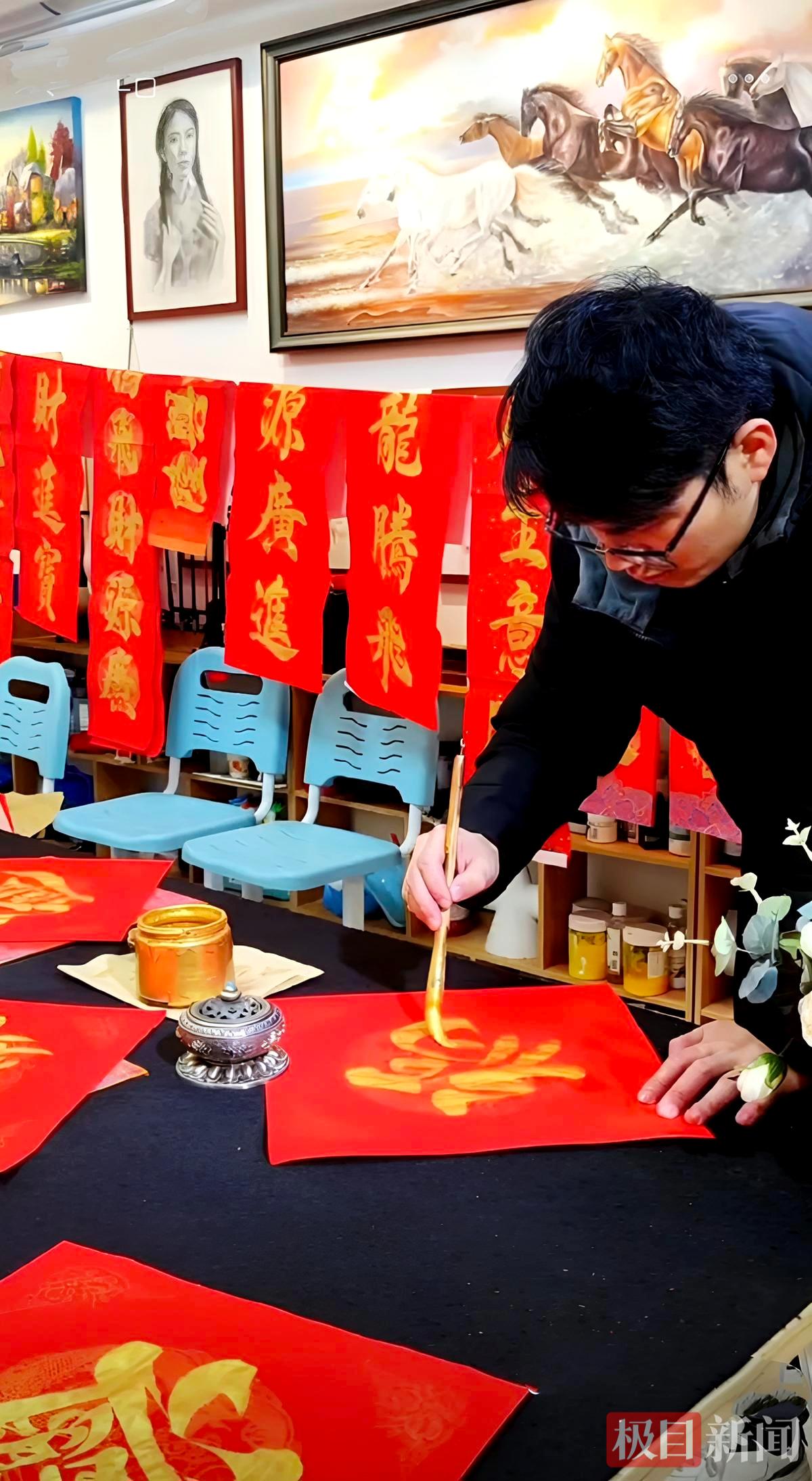 肖佳在写书法