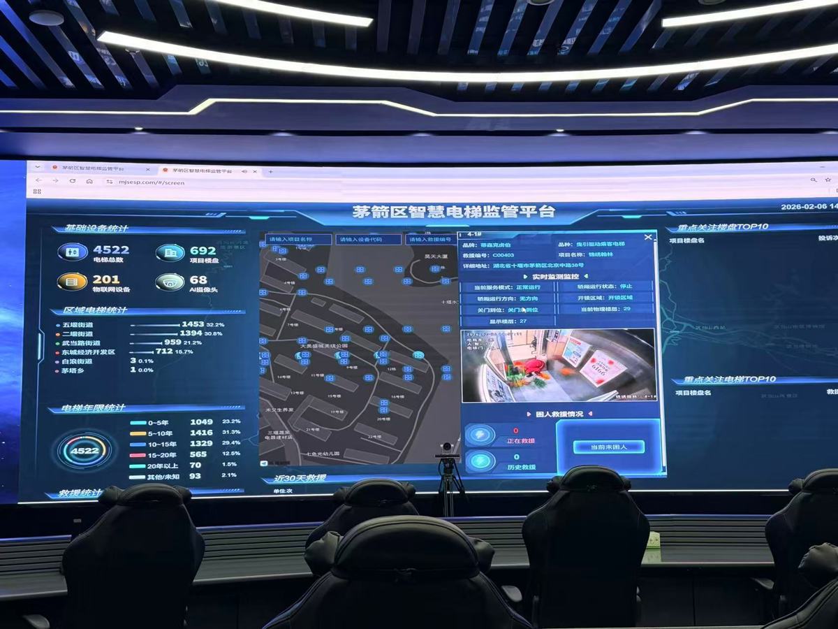 与此同时,在茅箭区智慧城市指挥中心,太行云梯系统已深度融入十堰全市电梯安全监管体系。市场监管执法人员通过指挥大屏,可对区域电梯位置、使用频率等数据一目了然,系统还能自动分析异常数据,为监管决策提供精准、实时的数据依据。