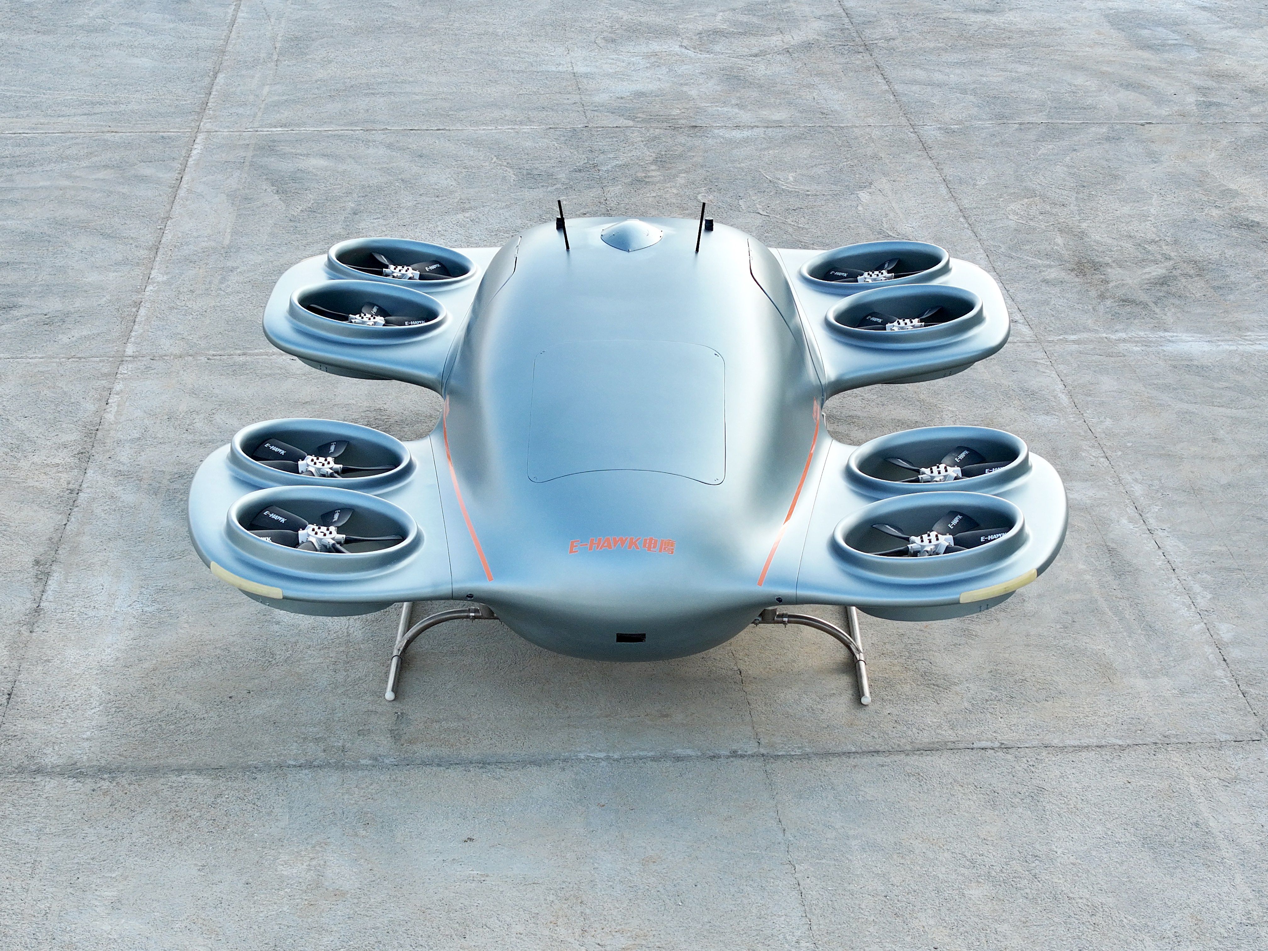 电鹰科技董事长蔡晓东介绍,起初他们提出想打造一款在城市中自由起降和穿梭,且低噪声、高安全性的载人飞行器时,有航空航天专业的专家表示“不可能”,经过6年打磨,他们真的做出来了。