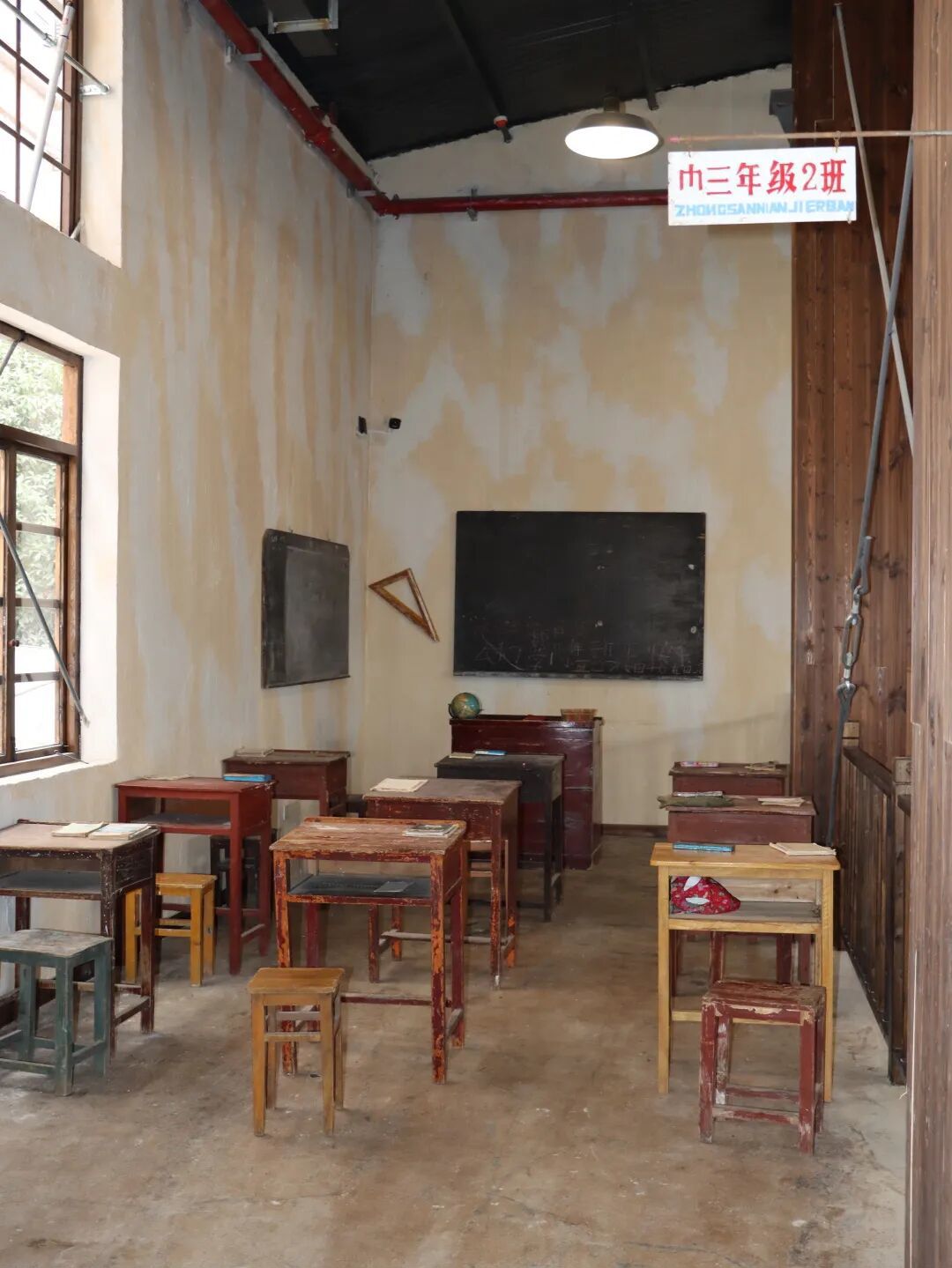 右侧是和平录像厅与休闲手工区,墙壁上一幅巨大的工农兵宣传画气势磅礴,“开得动、打得响、过得硬”的标语铿锵有力。