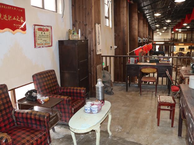 在阁楼角落里,旧式沙发、老式木柜、暖水壶、老式电视机、缝纫机等物件组合的“先进职工之家”,散发着上世纪七八十年代浓厚的生活气息。“太有感觉了。”市民李波拿出手机连连拍照。