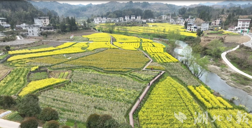 湖北日报客户端讯(通讯员周林)春风送暖,万物复苏。连日来,来凤县三胡乡安子堡村连片油菜花竞相绽放,金黄花海铺展田野,与青山、村舍、溪流相映成趣,构成一幅生机盎然的春日田园画卷,吸引众多市民游客前来踏青赏花、打卡拍照,共赴一场金色浪漫之约。