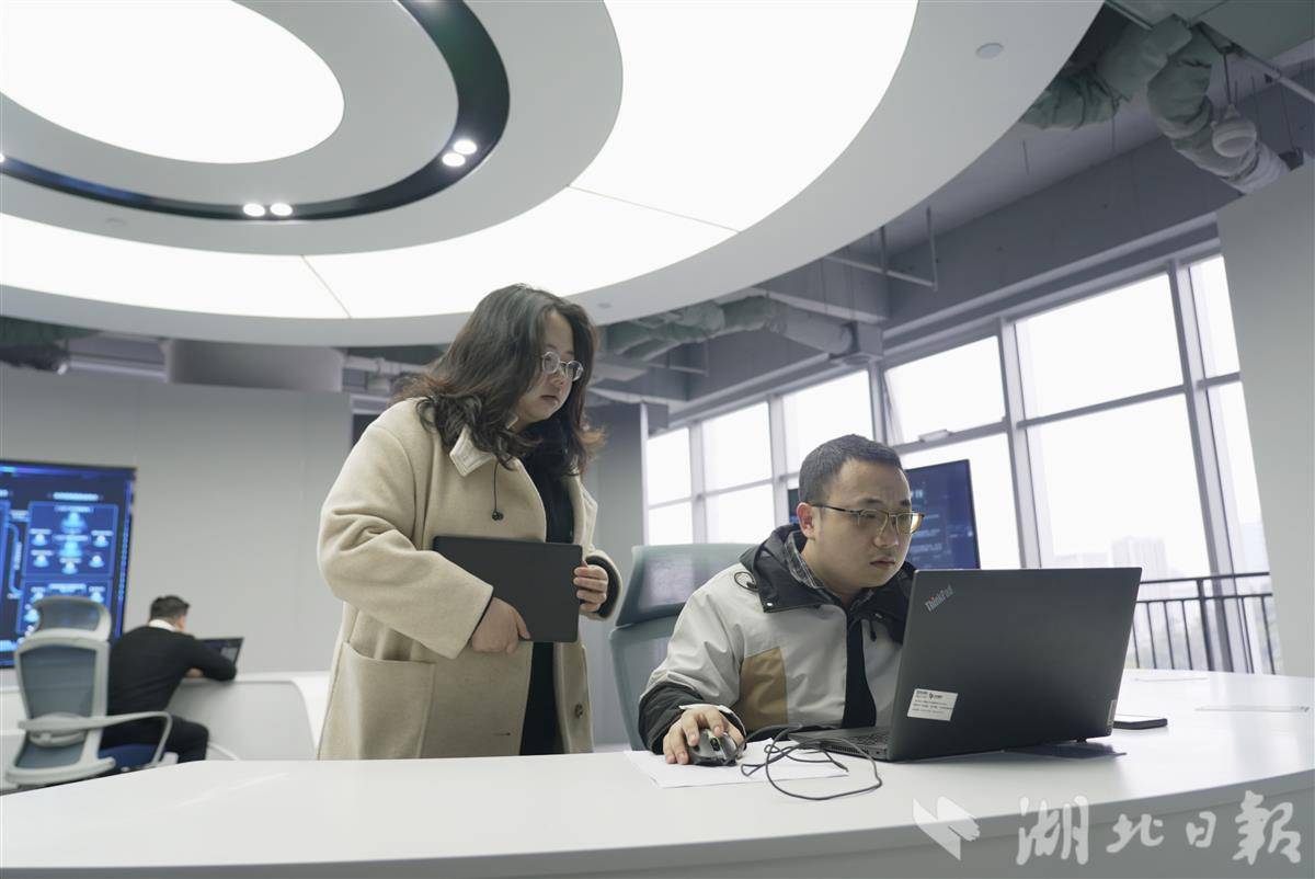 3月2日,湖北大数据集团AI工厂,技术人员正在工作。(湖北日报全媒记者张灿摄)