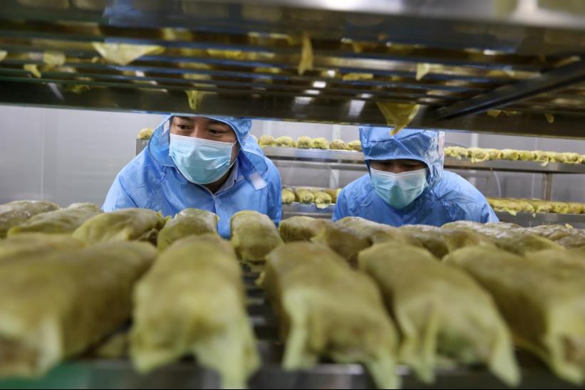 剁肉、搅和、笼蒸……1月20日,位于钟祥市九里乡的湖北润物食品公司生产车间里,工人们正忙碌地生产当地传统美食蟠龙菜。