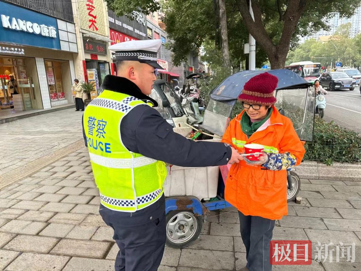 民警为环卫工人送上热汤圆(通讯员 供图)
