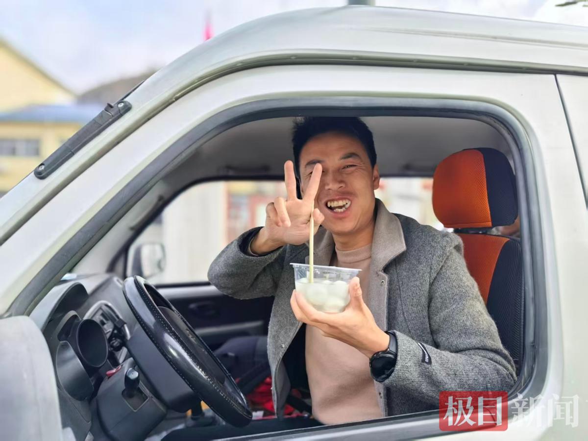 小货车司机陈师傅接过汤圆,眼中满是惊喜:“真没想到,能在这儿吃上热乎的汤圆,太暖心了!早上赶路没顾上吃饭。”