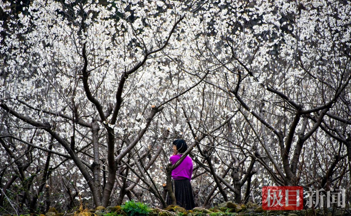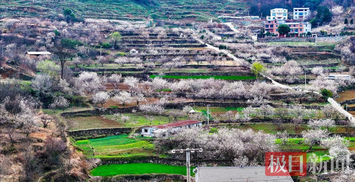3月3日,湖北省十堰市郧阳区茶店镇大岭山村樱桃花盛开,每天吸引着许多游客前来观赏打卡拍照。鄂西北大山区郧阳区347个村和社区数万亩的樱桃花开进入盛开期,也将进入春季观赏樱桃花的旺季。