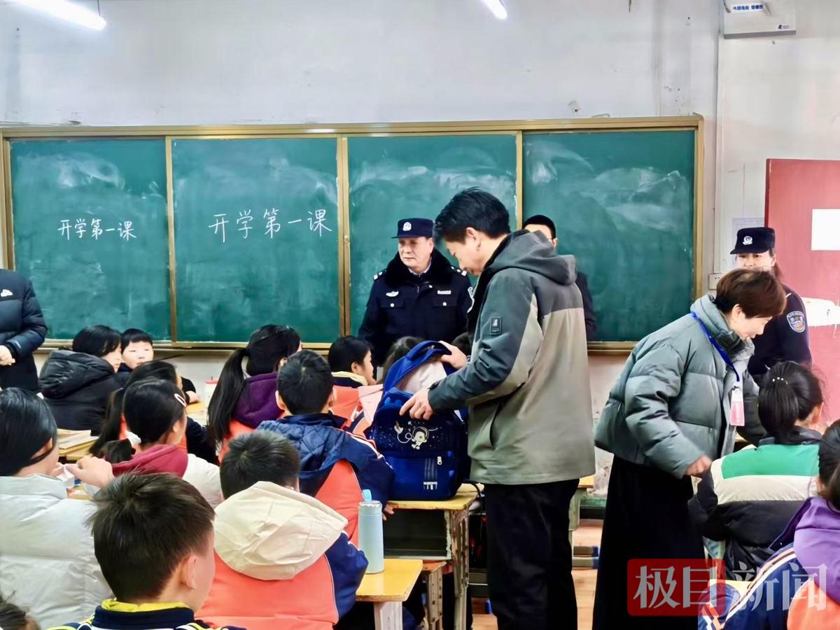 3月4日,湖北枣阳市公安局北城派出所组织民警深入枣阳市第四实验小学,以“安全检查+现场宣教”的形式,开展“开学第一课”活动,用实际行动守护师生平安。