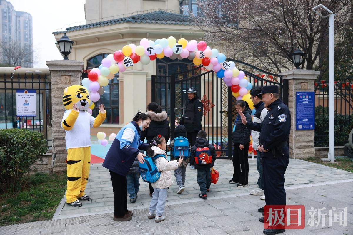 3月4日清晨,湖北襄阳市襄城区恒大华大天童幼儿园门口暖意融融。襄阳市公安局襄城区分局檀溪派出所民警汪浩国早早来到护学岗,迎接孩子们的开学第一天。