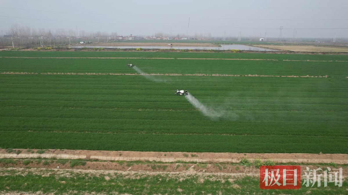 走进南垸良种场梅港村,三架无人机在小麦地上空来回穿梭,短短不到一个小时,便顺利完成了300亩小麦的飞防作业。种植大户吴三明站在田边,亲眼见证着这省工、省时又省钱的飞防作业场景,脸上满是喜悦。