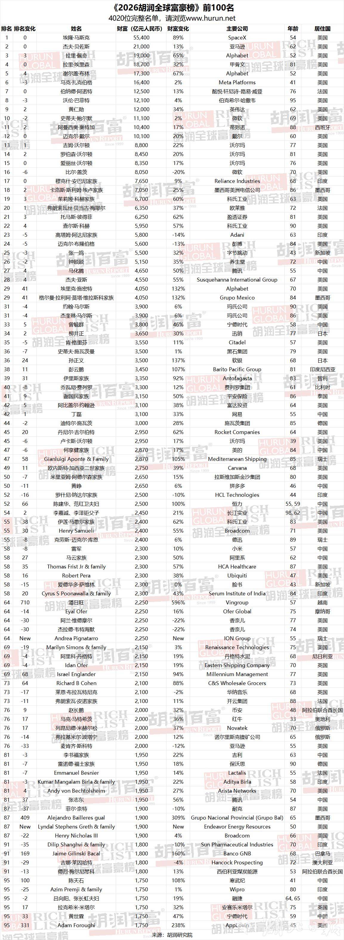 胡润全球富豪榜发布