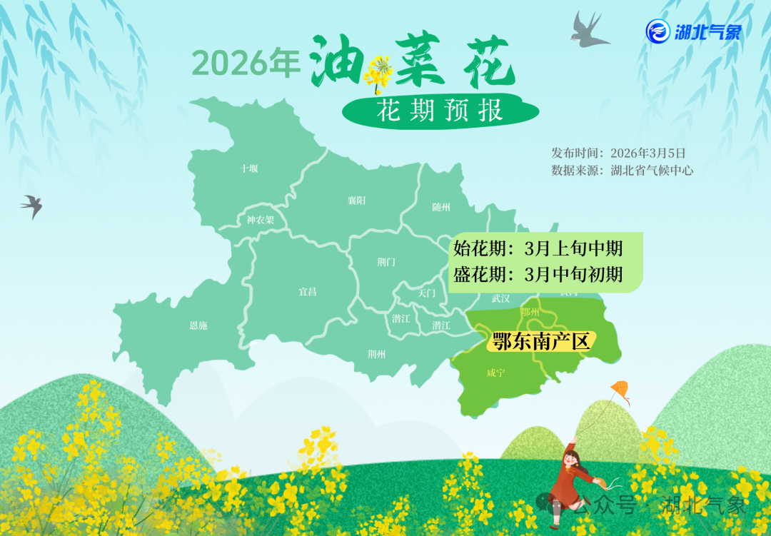 鄂东南产区:3月上旬中期进入始花期,中旬初期进入盛花期。