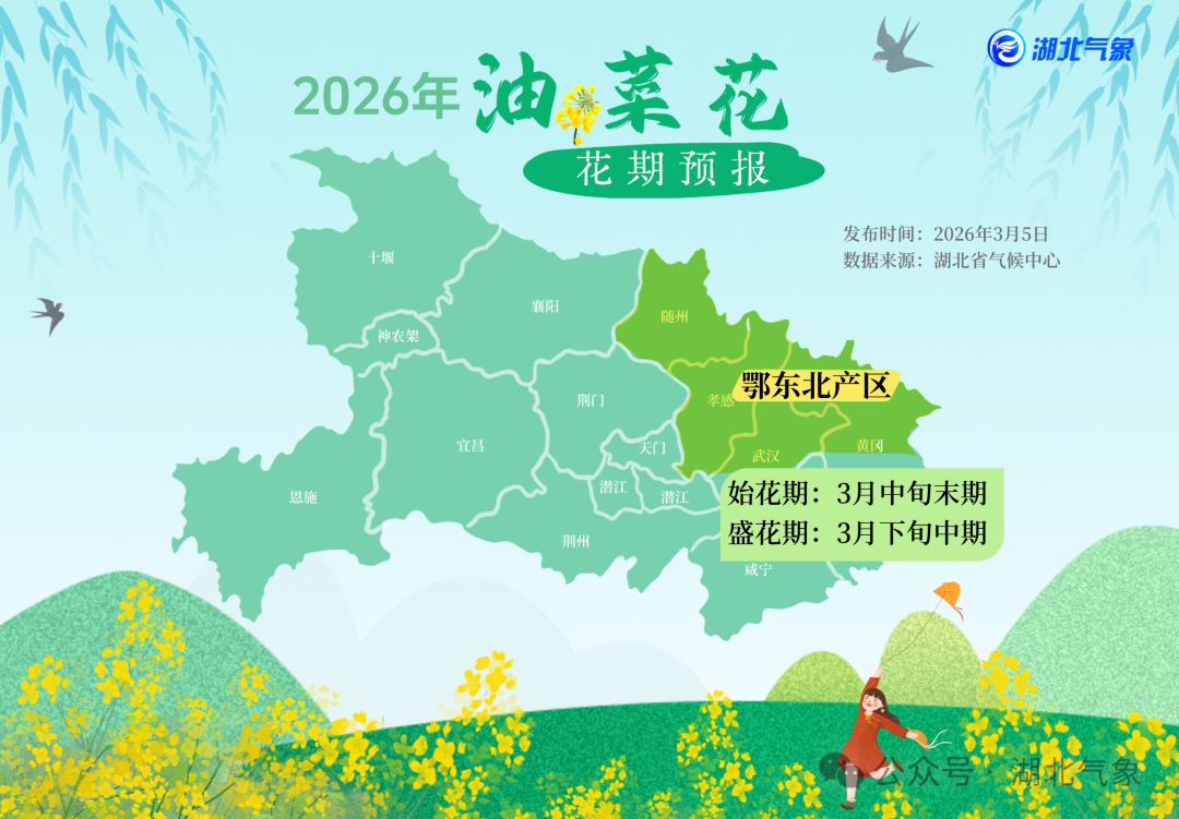 鄂东北产区:3月中旬末期进入始花期,下旬中期进入盛花期。