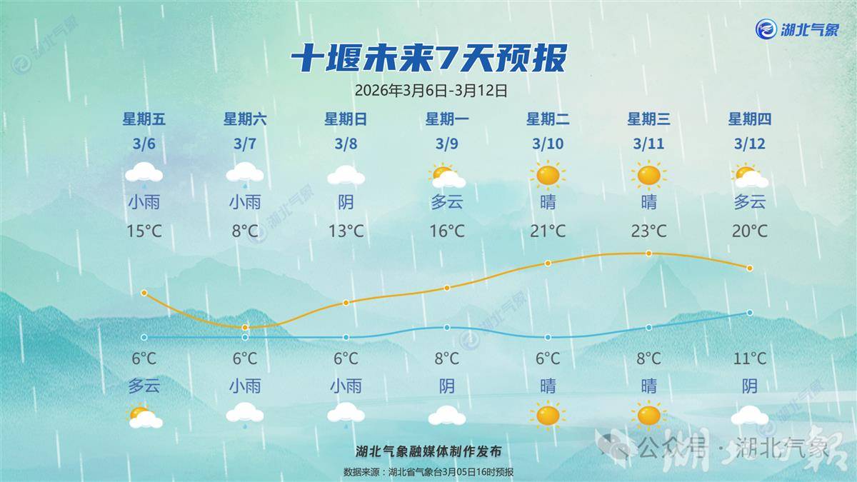 气象部门提醒:未来三天弱降水频繁,早晨局地有雾出没,公众出行需防范阴雨和低能见度天气的不利影响。此外,鄂西气温下滑,叠加北风影响,湿冷感明显,提醒公众注意添衣保暖。