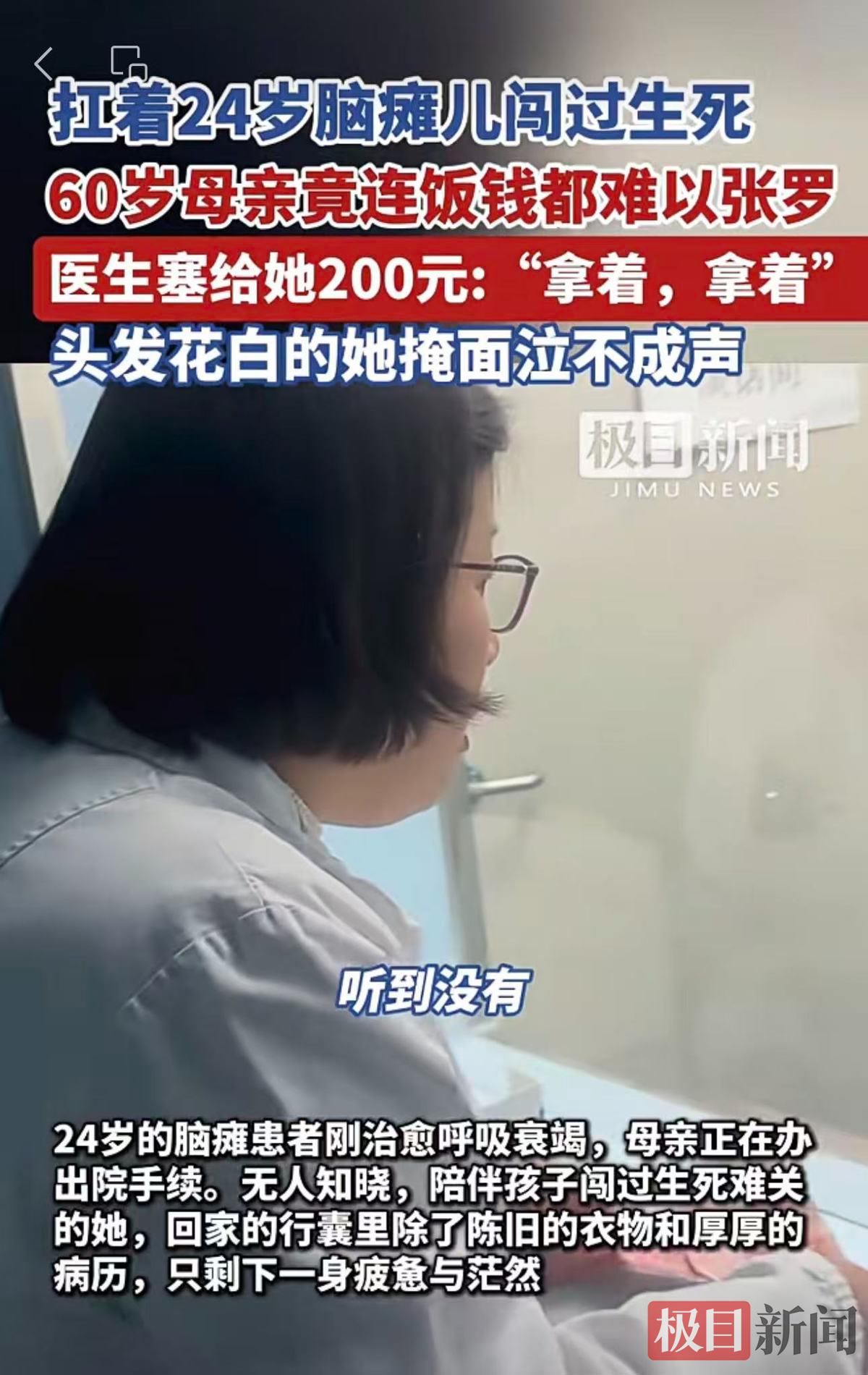当时,一名24岁的脑瘫患者刘平(化名)刚刚脱离呼吸衰竭的危险期,准备出院。为他办理手续的,是他的母亲刘香(化名)。