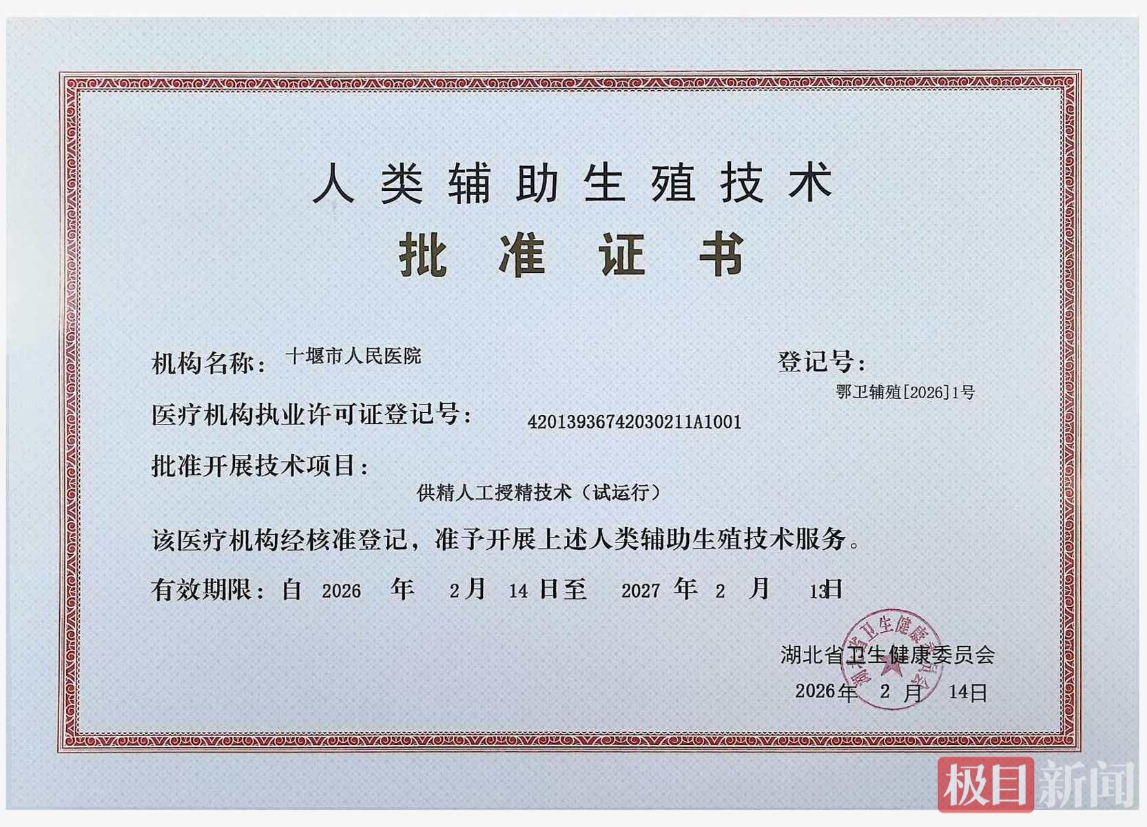 3月6日,随着湖北省卫生健康委发放试运行资质证书,十堰市人民医院生殖医学中心正式成为鄂西北地区独家获批开展供精人工授精技术的医疗机构。此举标志着该院已囊括夫精/供精人工授精、第一至三代试管婴儿等国家批准的所有辅助生殖技术,正式迈入全周期、全链条、全技术服务的新阶段。