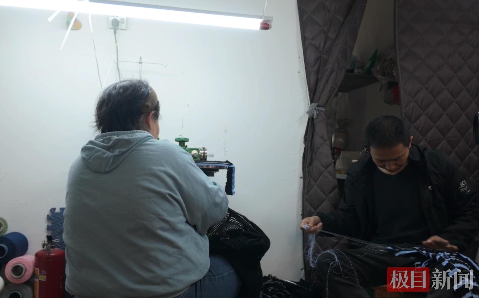 作坊里摆着五六台缝盘机,夫妻俩是代加工链条上的一环——将周边工厂送来的袖片、衣片缝合,做成完整的毛衣。冉义元干这行20多年了,进过厂、做过餐饮、去北京打过工,3年前又回来捡起这门手艺。