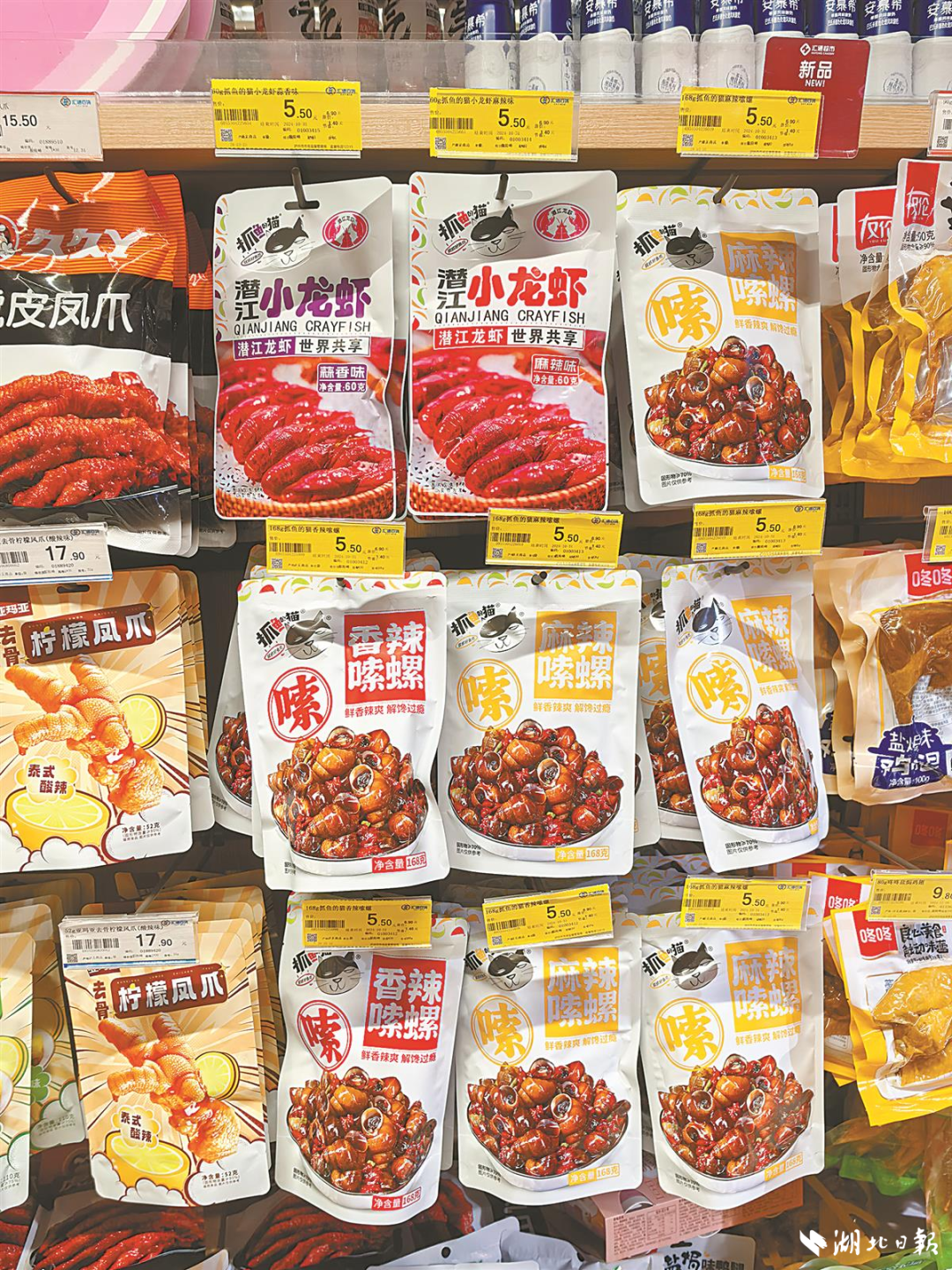 在龙头企业带动下,潜江新柳伍等加工企业也推出香酥龙虾尾等休闲食品,成为潜江龙虾产业新的增长点。从餐桌到口袋,潜江龙虾正以更轻盈的姿态“爬”进年轻人的消费场景。