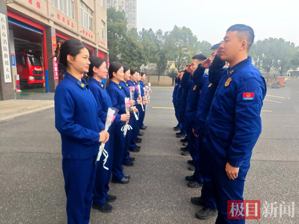 “节日快乐!感谢你们的辛勤付出!”一束娇艳的玫瑰,一声真挚的问候,致敬的是她们在消防文员岗位上的默默坚守与奉献。镜头前,手捧鲜花的女文员们笑靥如花,与身上的“火焰蓝”制服交相辉映,构成了这个春天营区里最亮丽的风景线。