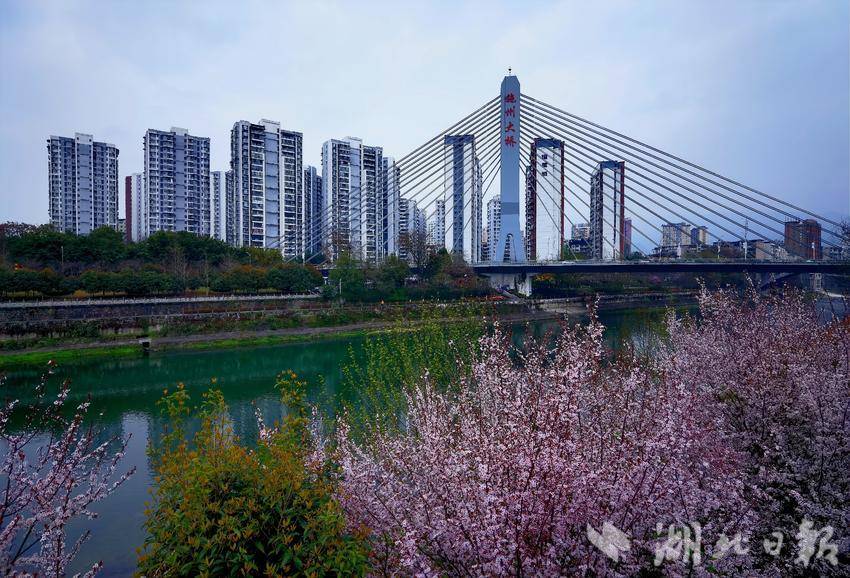湖北日报客户端讯(通讯员 冯本勇)3月7日,恩施城区清江河岸施州桥畔,樱花盛开,高楼林立,尽入画卷。一河碧水护城,满岸红花映衬,春日的温柔与城市的繁华在此相融,生机盎然,尽收心底,醉人心脾。