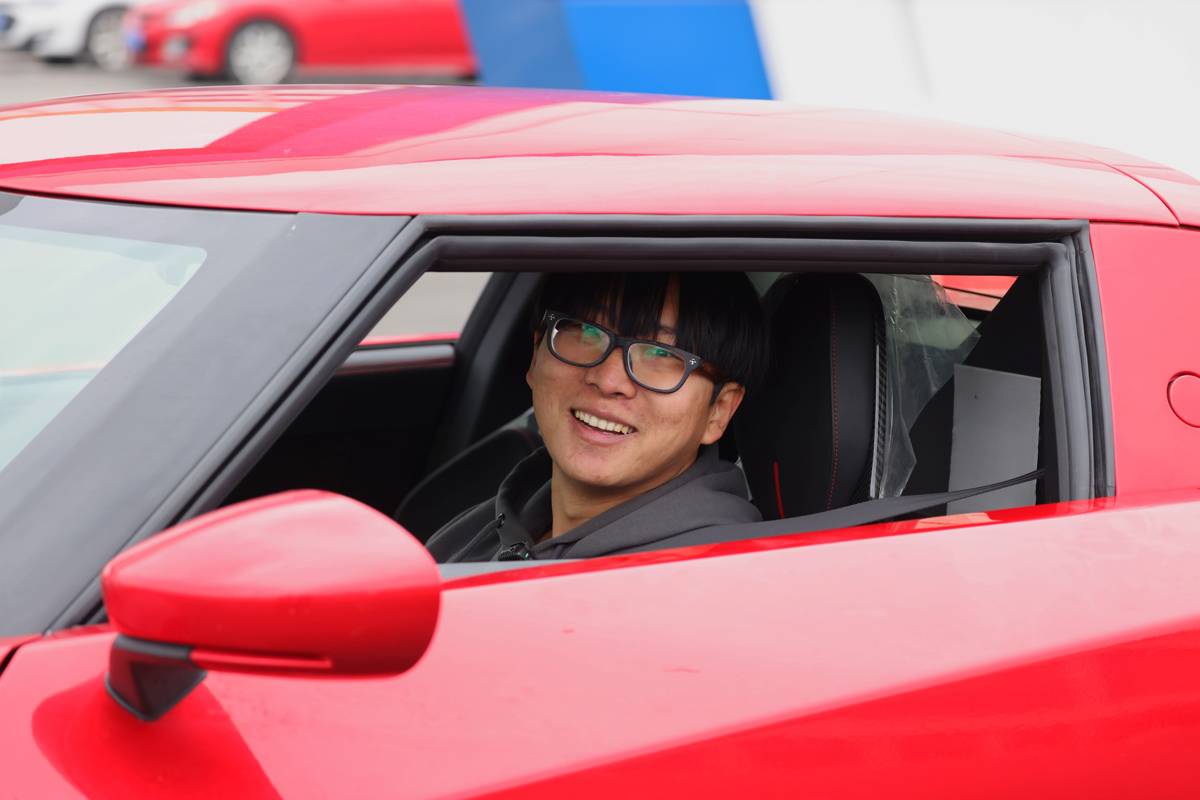 3月5日,在仙桃高新区,冯晓彤驾驶工匠派小跑车SC01从测试跑道飞驰而过,电机高频转速带来的轰鸣穿透春风,声声悦耳。