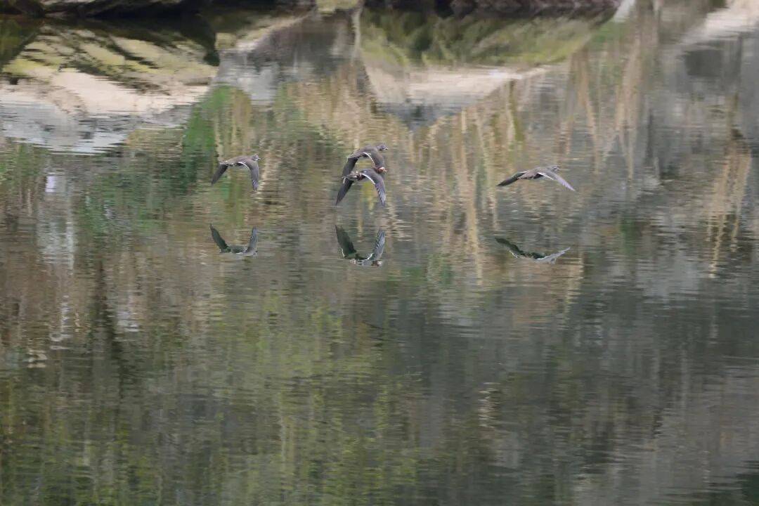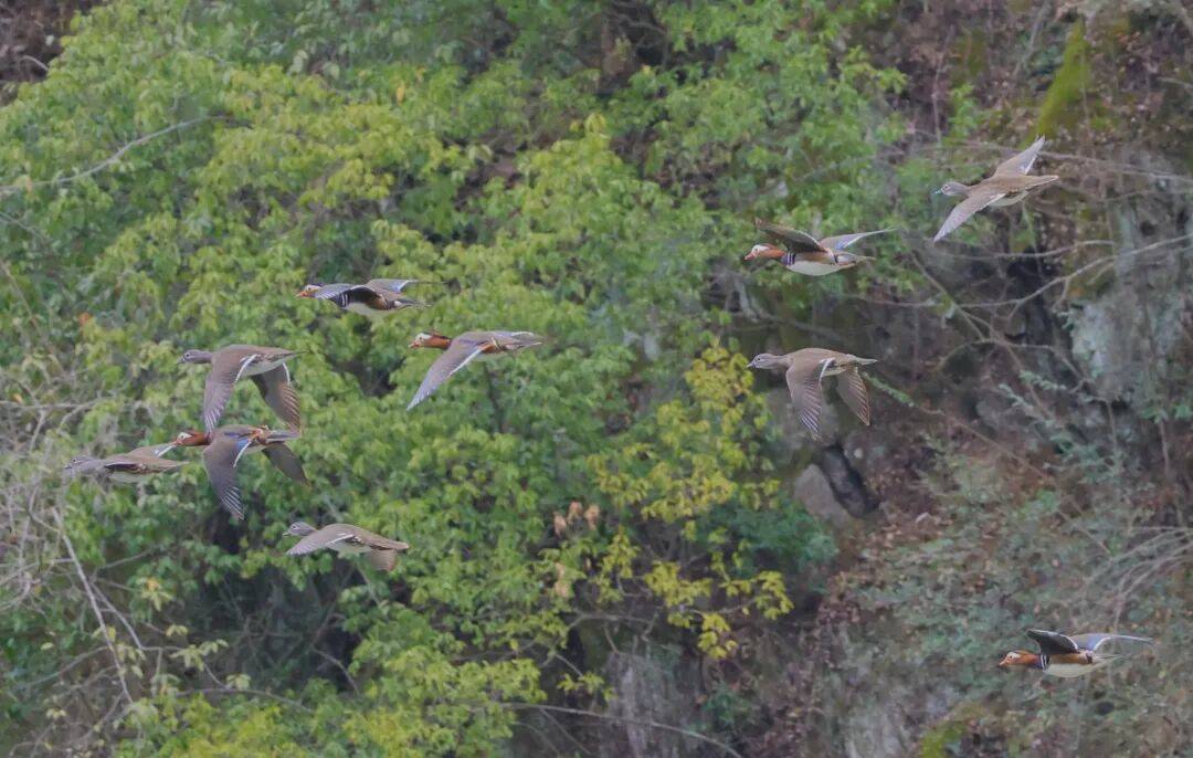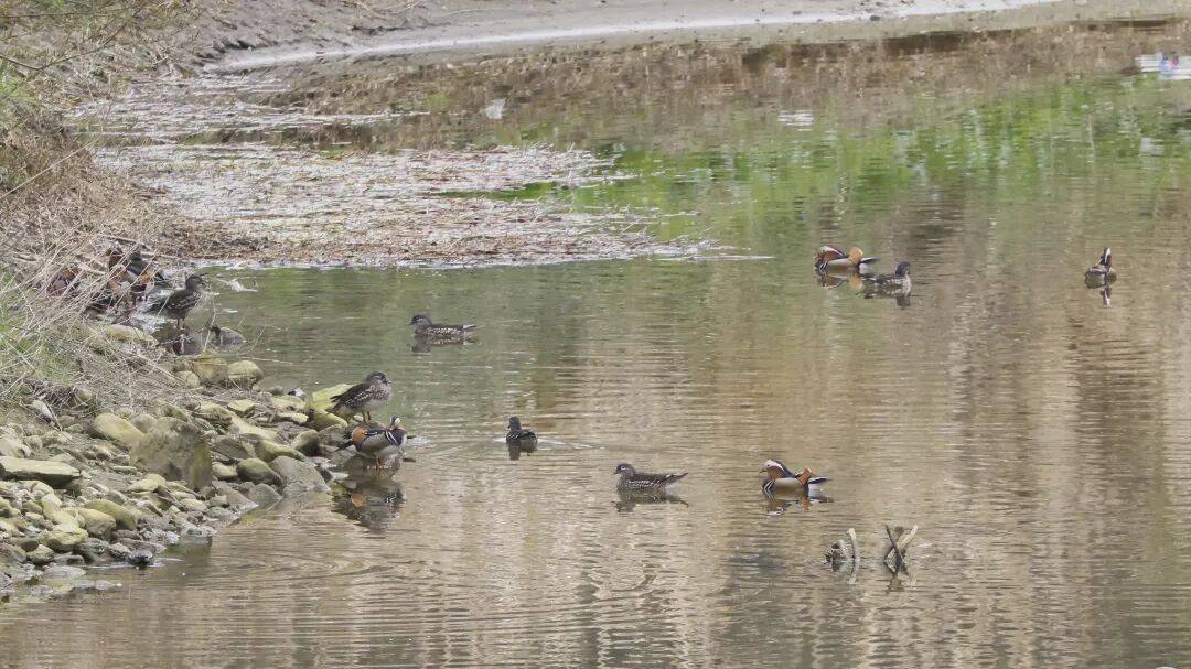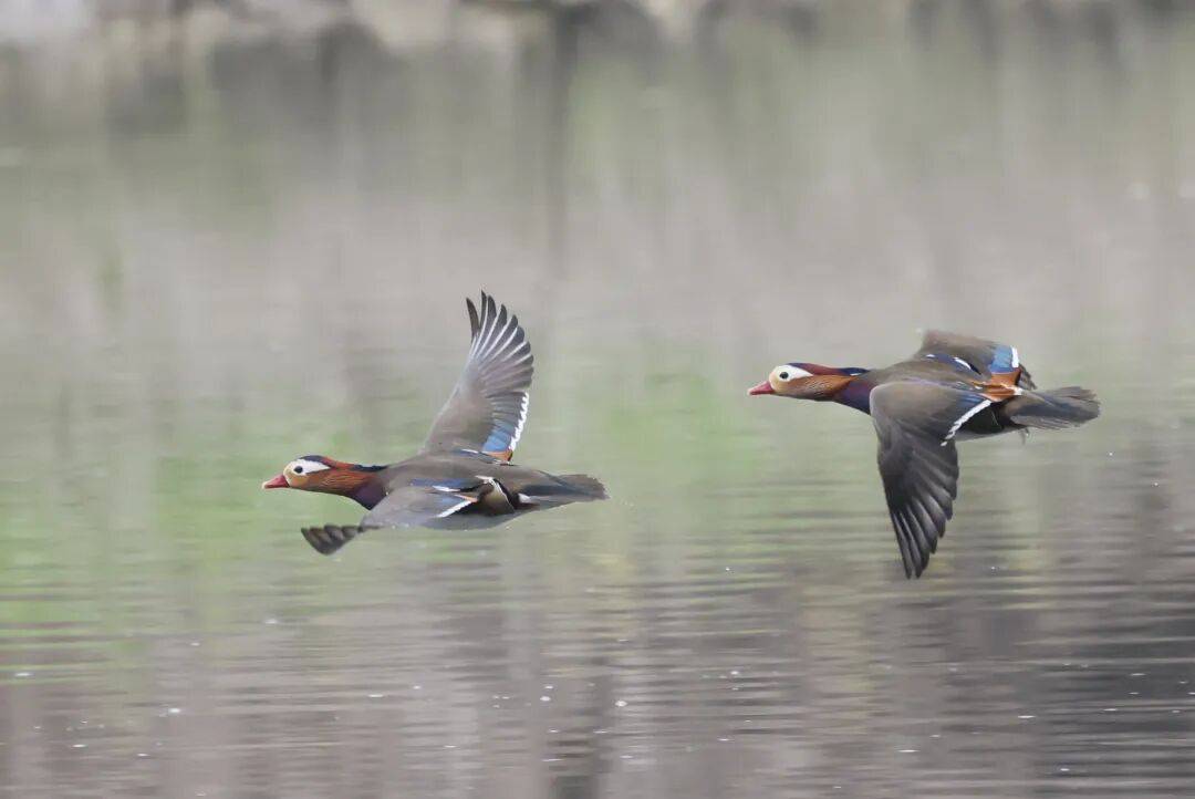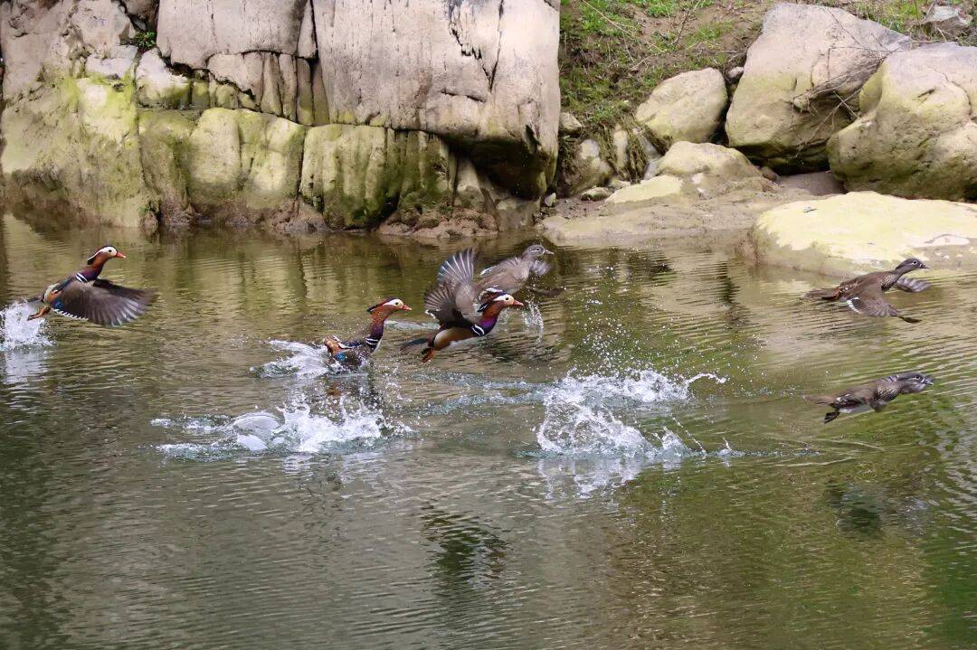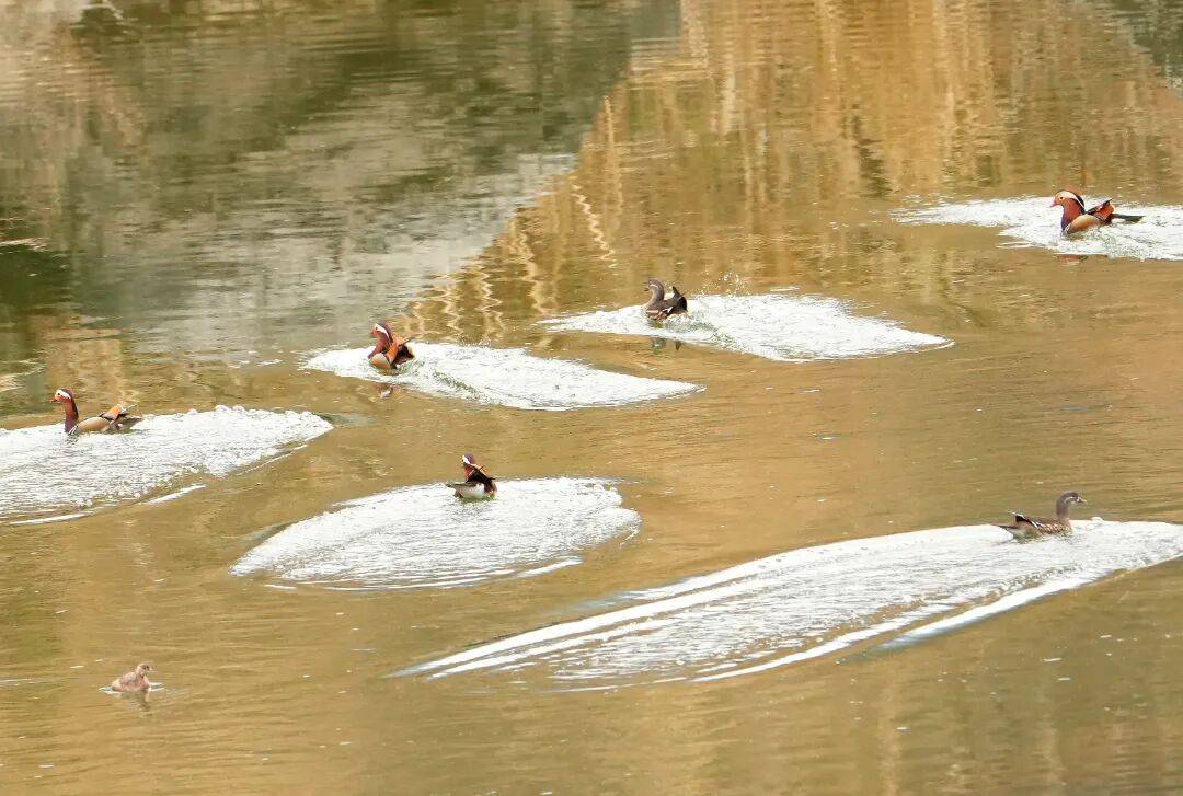 鸳鸯作为国家二级重点保护野生动物,虽被评为“无危”物种,但全球种群数量呈下降趋势,其栖息地的破坏是主要致危因素。鸳鸯生性机警,善游泳、潜水和飞行,春冬季主要以青草、树叶、植物果实等为食,繁殖季则偏爱昆虫、小型鱼类等动物性食物,常成群活动,尤其在迁徙季节和冬季,群体规模可达数十甚至上百只。此次在南河段发现的鸳鸯群体,数量可观、状态良好,说明这里已成为它们理想的栖息和觅食场所。