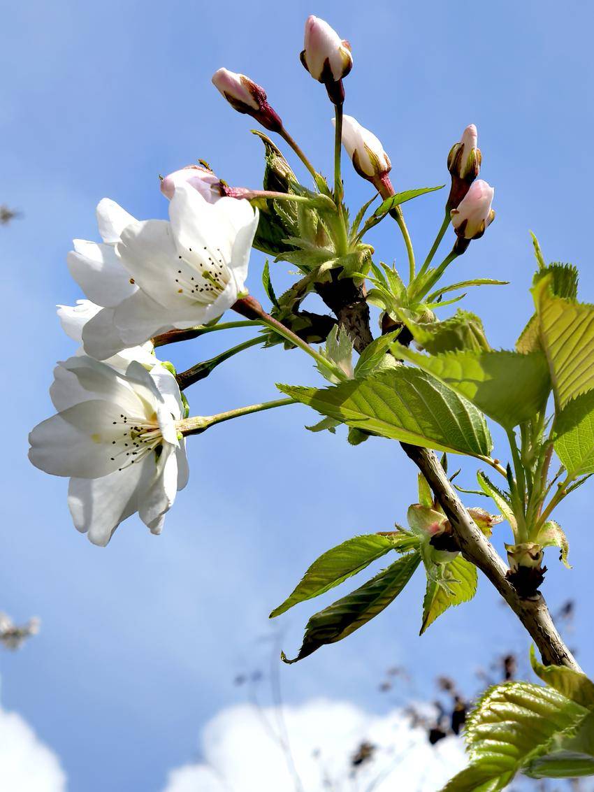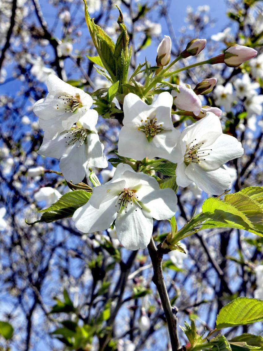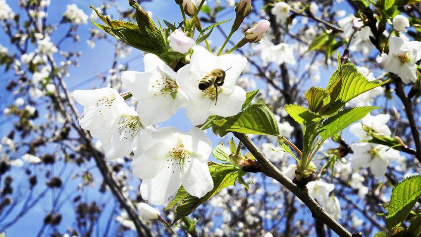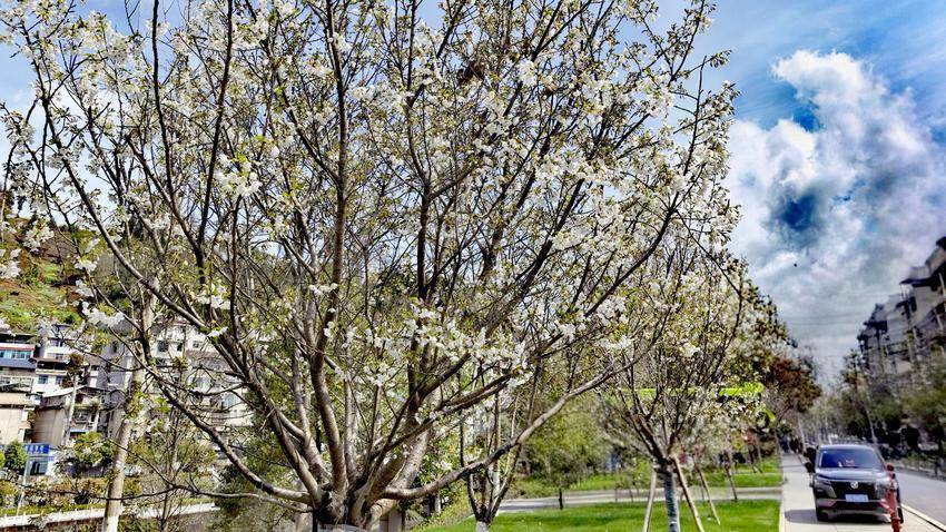 值得一提的是,现场还捕捉到了蜜蜂采蜜的生动画面,洁白的樱花与勤劳的蜜蜂相映成趣,不仅印证了当地生态环境的优良,更为这幅春日图景增添了无限生机与活力。