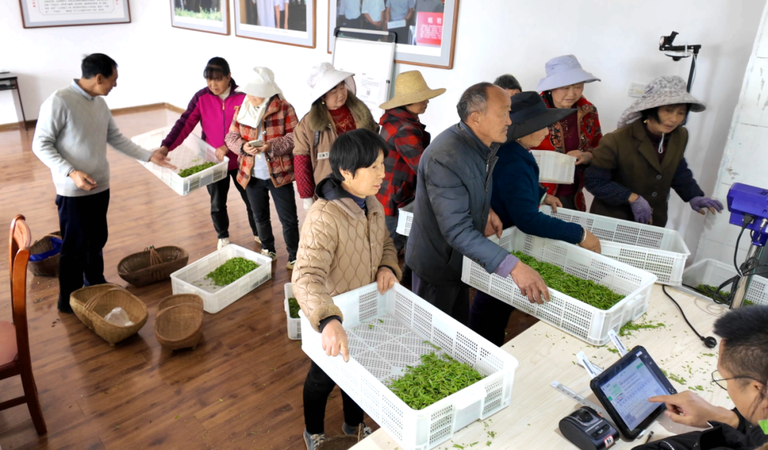 茶农们的信心与底气,不仅源于自然的馈赠,更得益于龙头企业的带动和科学的种植管理。普安片区的茶叶加工厂里,也是一派繁忙景象,湖北昭君茶业有限公司的生产负责人蒋飞正忙着指导鲜叶收购工作。他告诉记者,茶厂给普安片区茶农提供技术服务指导,如科学修剪、绿色病虫害防控,每年会组织两至三次专项技术培训,帮助茶农提升种植技能,提高茶叶品质与产量,有效增加茶农收入。