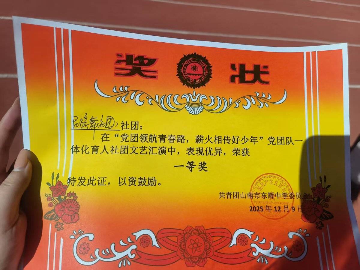 付出终有回报,在东辉中学年底“党团领航青春路,薪火相传好少年”文艺汇演中,迪丽热巴指导的民族舞《晨曦中的玫瑰》荣获一等奖。掌声响起时,孩子们齐刷刷转身望向台下的她,大声喊着“老师,您辛苦了”,那一刻,所有的疲惫都化为了满心的幸福。