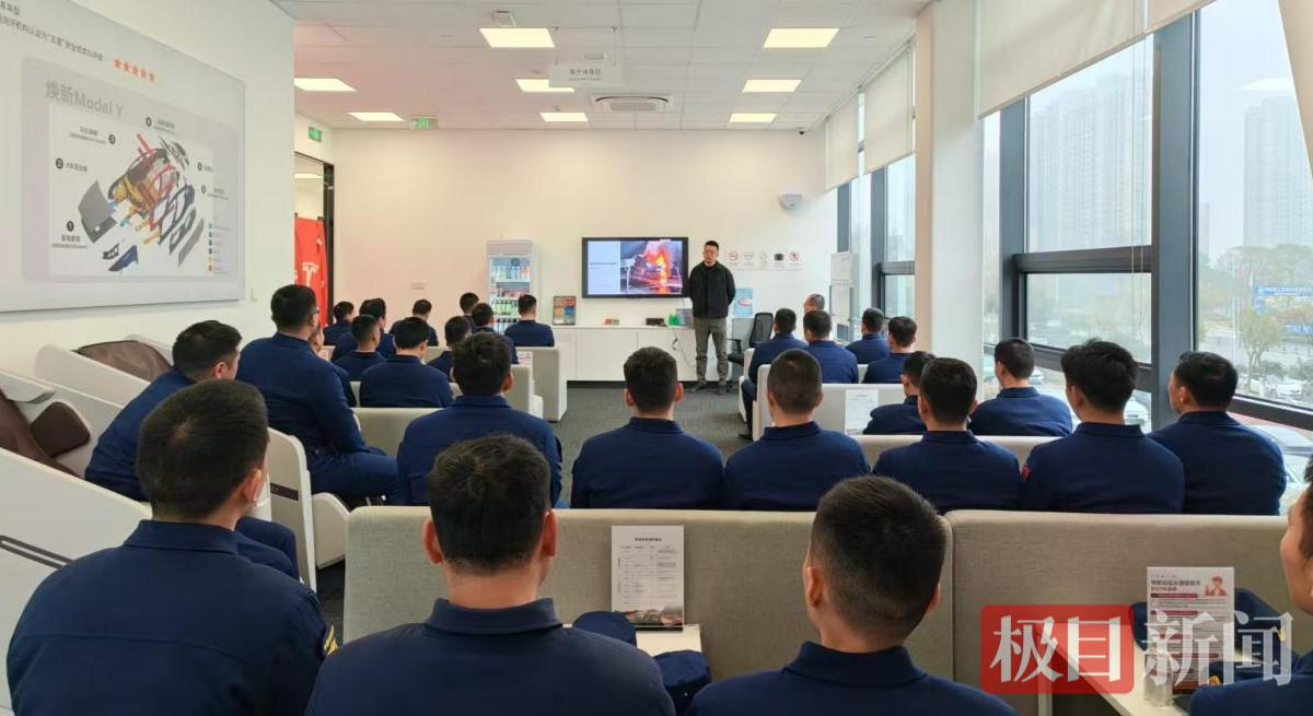 近日,湖北省荆州市消防救援支队组织城区5个消防救援站指战员到辖区的特斯拉中心,开展新能源汽车火灾防控实地调研学习活动。此次活动旨在通过“零距离”接触新能源汽车前沿技术,帮助指战员深入了解其结构特点与安全风险,进一步提升队伍应对此类新型火灾的实战处置能力。