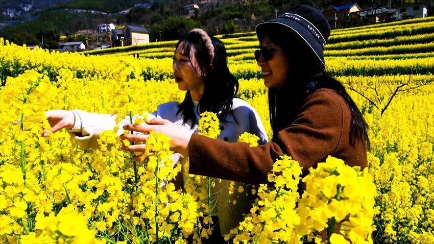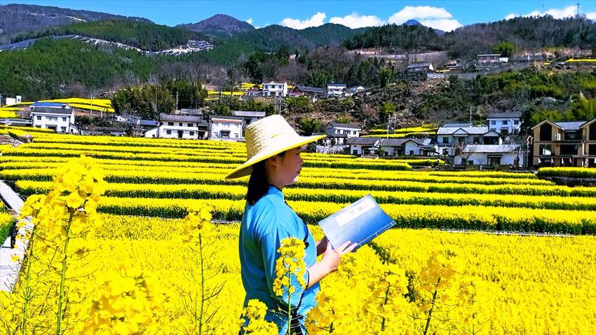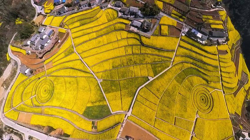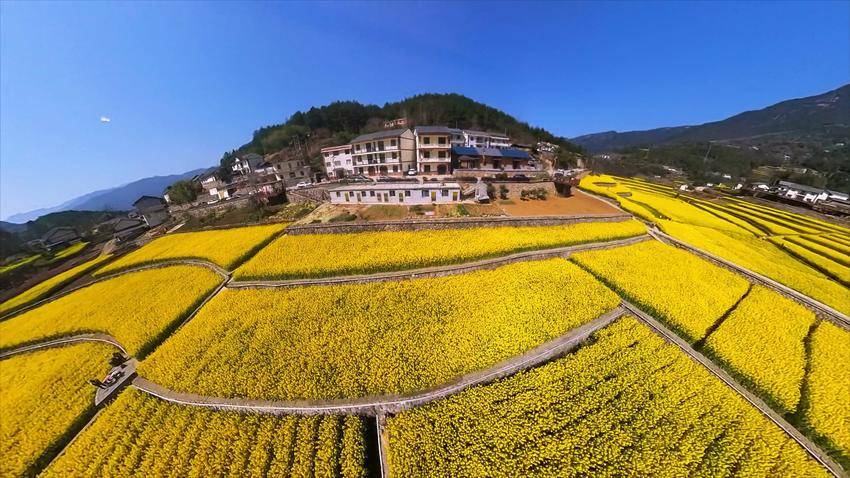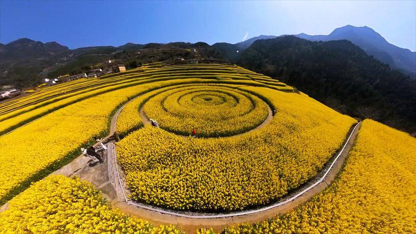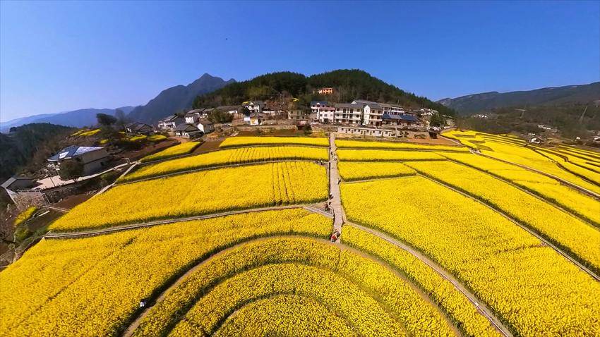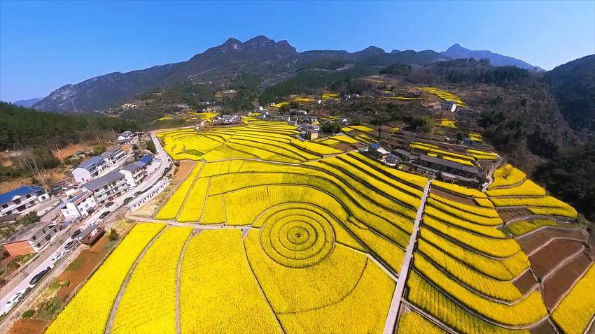 湖北日报客户端讯 (通讯员袁选国)360度镜头掠过,春风轻抚龙池。千亩油菜花沿梯田层层铺展,从山脚漫至山腰,汇成一片流动的金色海洋。