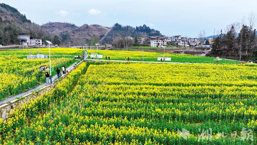 湖北日报客户端讯(通讯员邓浩、汤煜东)春回大地,万物复苏。近日,来凤县三胡乡千亩油菜花进入盛花期,2026年来凤县油菜花观赏季同步启幕,八方游客循着花香赴约,在金色花海中感受春日韵味,体验农文旅融合的独特魅力。