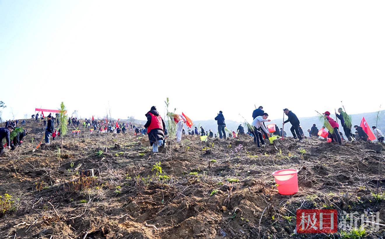 3月11日,湖北浠水县竹瓦镇朱店村寅卯山上人头攒动、彩旗迎风,来自全县县直机关、企事业单位的干部职工以及社会各界志愿者共700多人,一起参加2026年浠水县机关义务植树活动,用双手为家乡添绿、为生态助力。