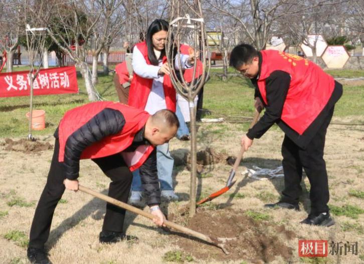志愿者的辛勤劳动,让120多棵新栽的樱花树苗挺立在樱花谷,为春日的游园再添了一片新绿。