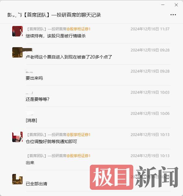 “当时没有丝毫的怀疑,还是很相信他们。”彭先生说,当天清仓后,卢某又让其购买一支电器的股票,结果购买当天再次被套,在持续下跌并触及止损位后,对方仍坚持“没有问题,继续持有”。导致该股被套长达近一年,直至2025年8月服务期满仍未能解套。