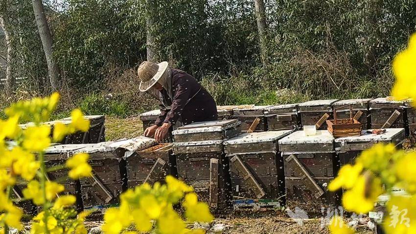 花海深处,养蜂人正穿梭在花株间,小心翼翼地检查蜂箱、采收蜂蜜,晶莹的蜜滴沾满蜂箱,阵阵甜香混杂着油菜花香,弥漫在空气中,勾勒出一幅“花海养蜂忙”的田园画卷。当天,当地广场舞队身着特色服饰,在油菜花埂上翩翩起舞,《汉川斗笠好》等地方特色的歌舞轮番上演,欢快的旋律、优美的舞姿与金黄花海相映成趣,展现了汉川深厚的民俗文化底蕴,也让游客在赏花海、观歌舞中感受乡村的独特魅力。
